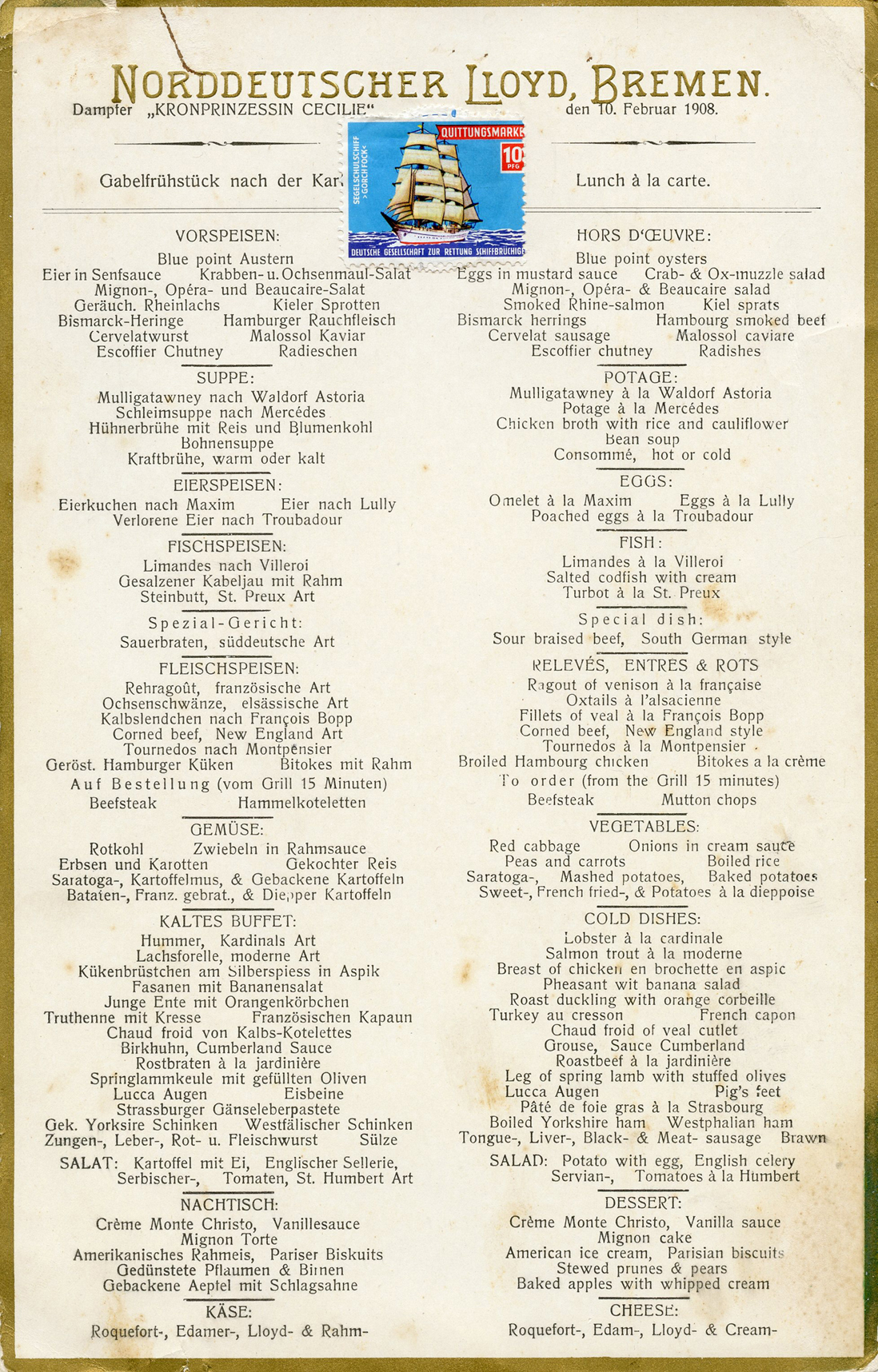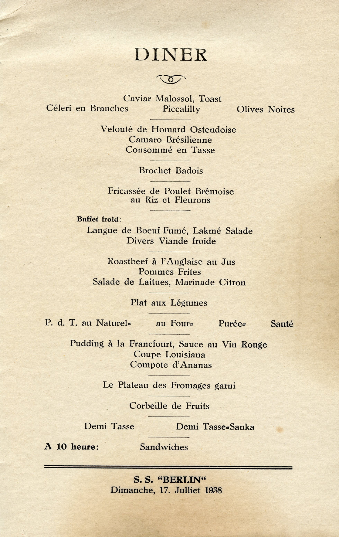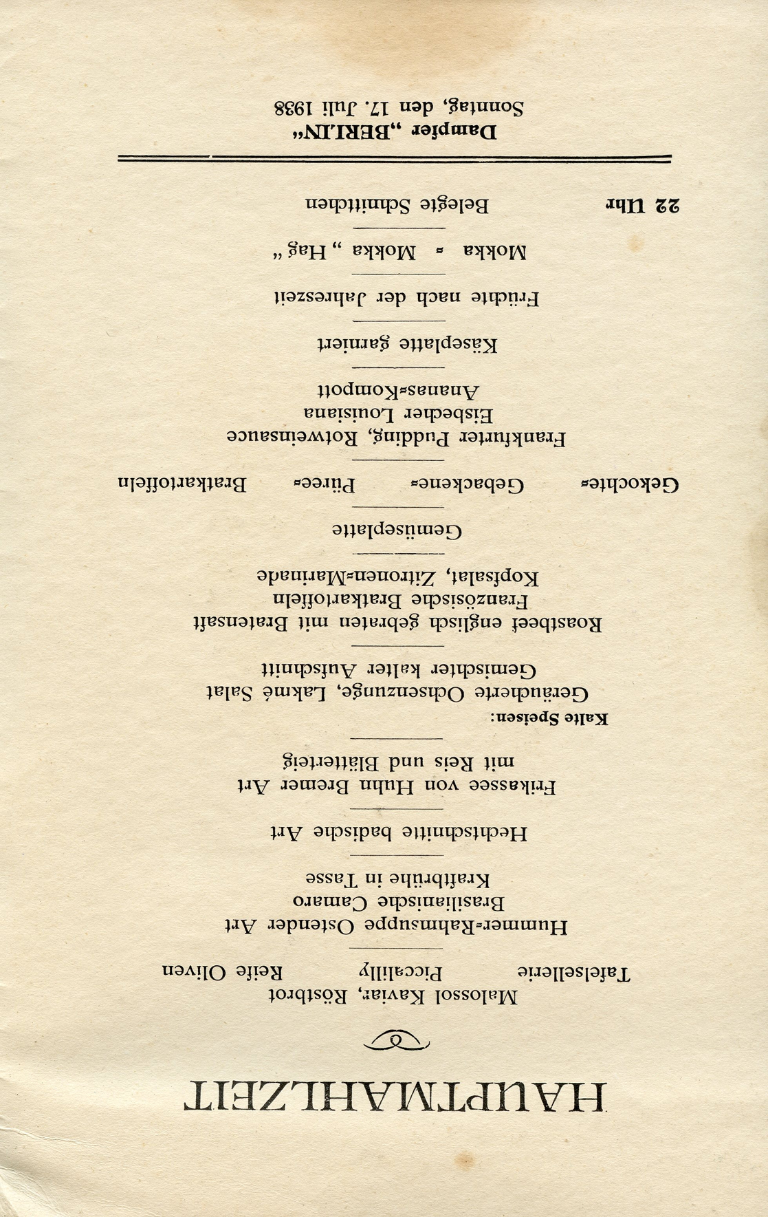 [Below: Here is a menu from the Norddeutscher Lloyd "Berlin".]