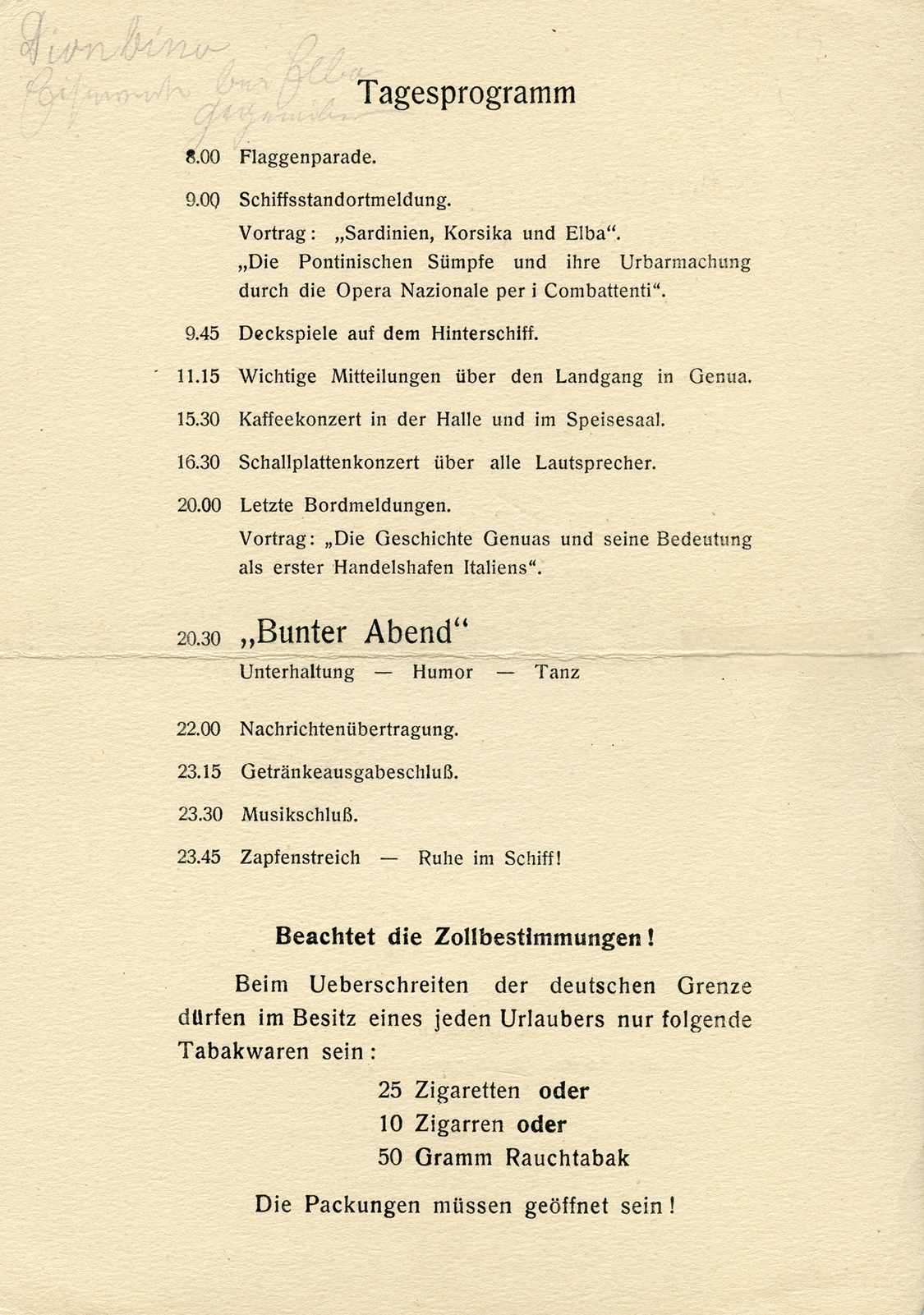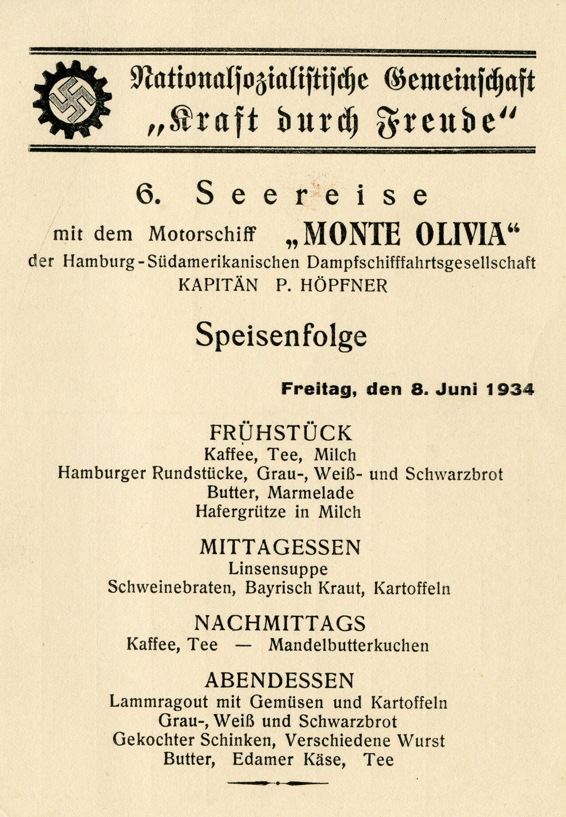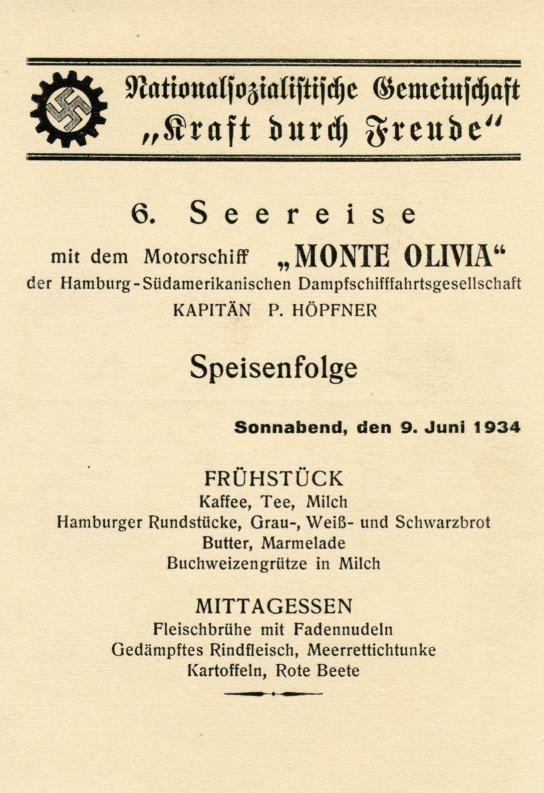 [Below: A menu from a 1934 'Dresden' KdF cruise.]