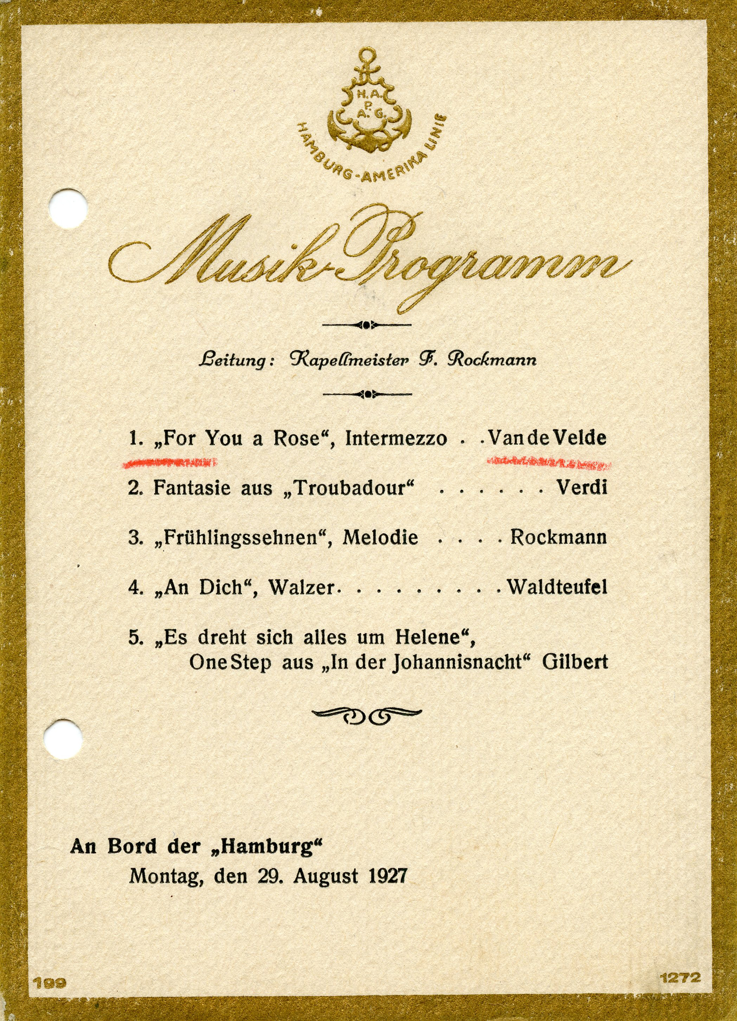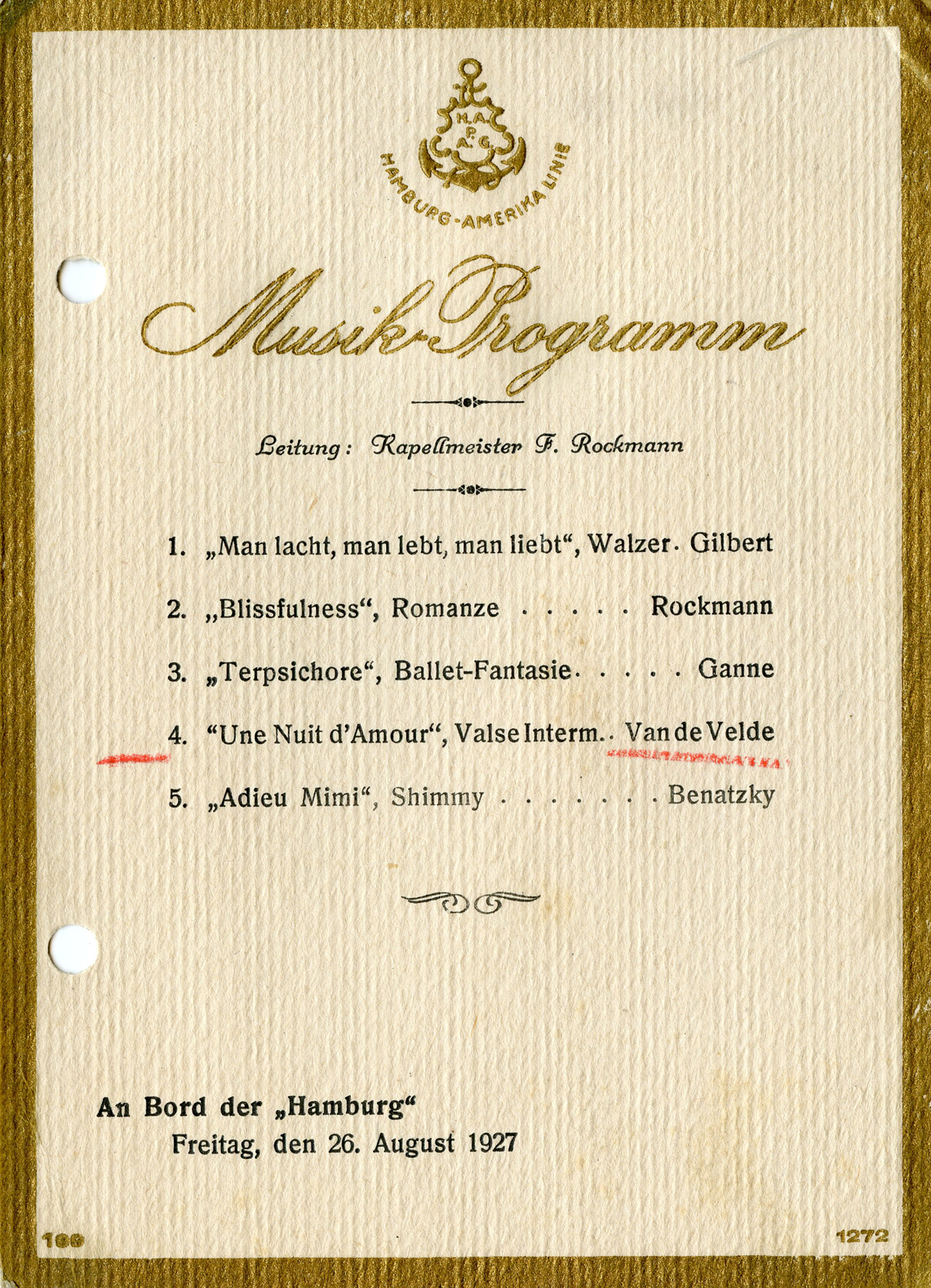 [Below: This is a music program from the Hamburg-America Line, from the 'Hamburg' ship from September 1, 1927. Click to see more.]