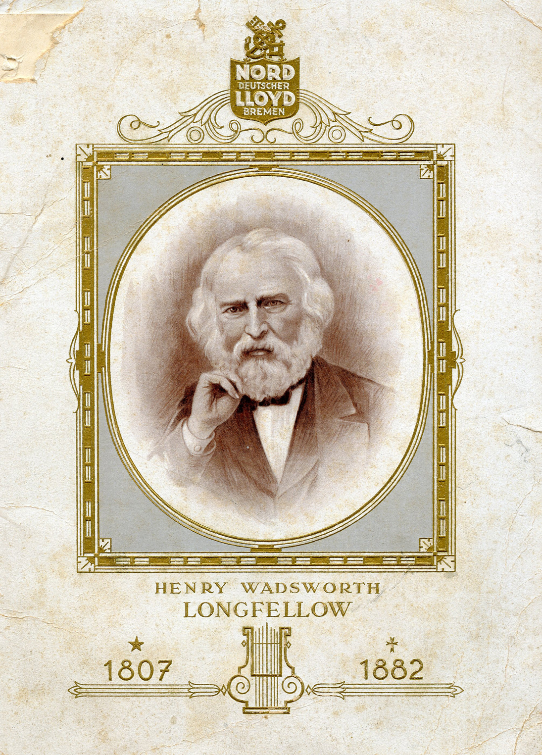 [Below: This is a booklet called 'Across the Atlantic' that honors the poet Henry Wadsworth Longfellow, from the 'New York' ship from June 5, 1930. Click to see more.]