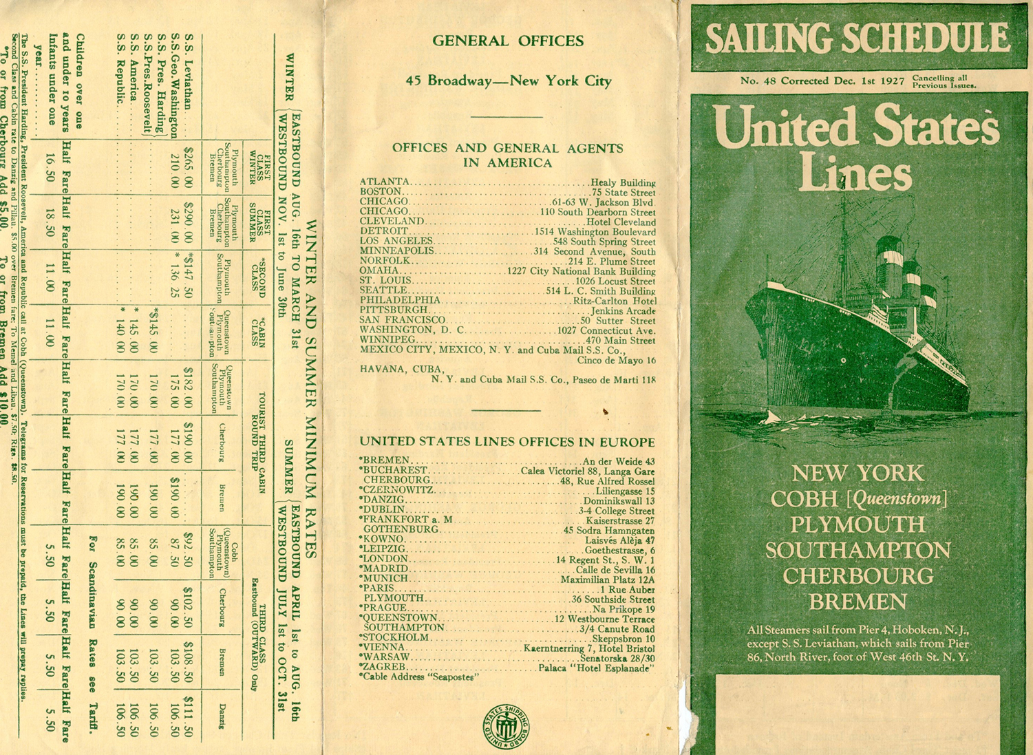 [Below: This is a schedule called from the United States Lines, from the 'New York' ship from December 1, 1927. Click to see more.]