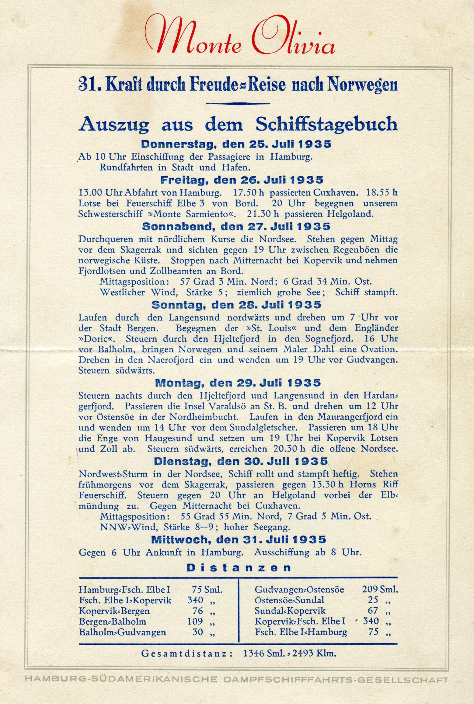 [Below: This is a menu from the 'Monte Olivia' ship on a KDF cruise on July 25-26, 1935.]