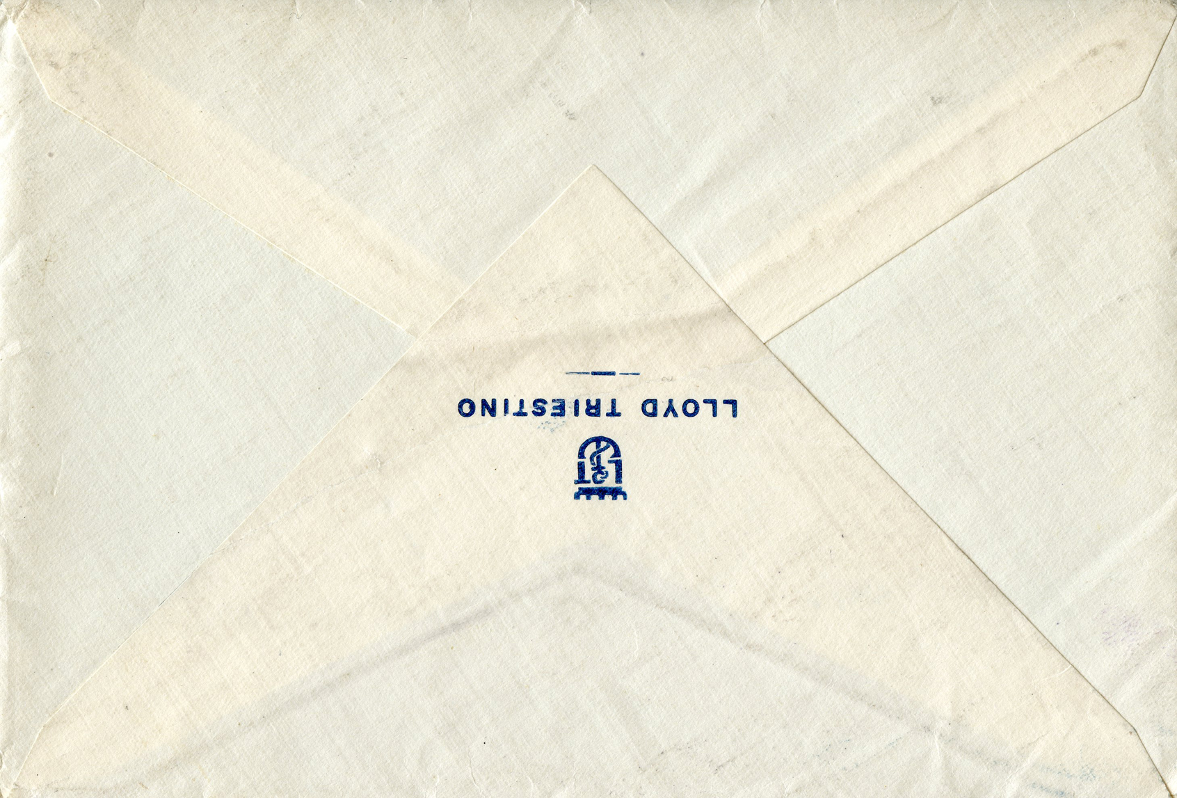 [Below: Close-up. Postmarked on board the S.S. Lloyd Triestino. Click to enlarge.]