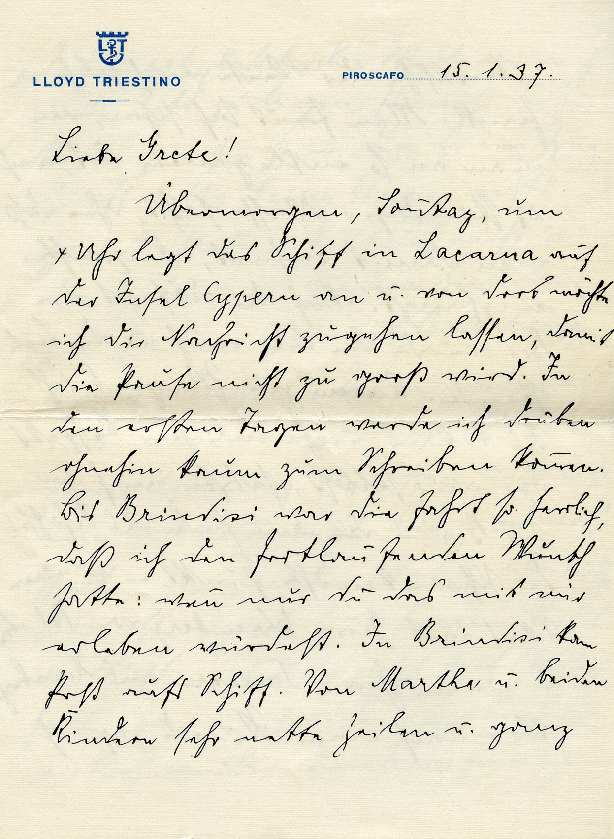 [Below: Seven page letter on S.S. Lloyd Triestino stationary. Click to read the letter.]