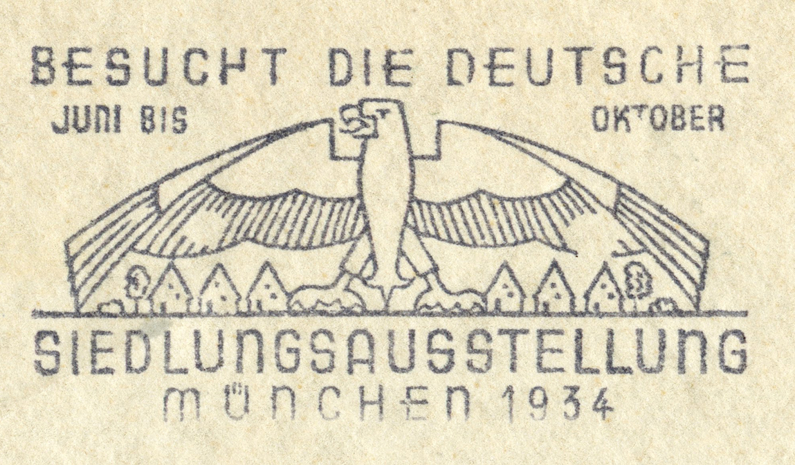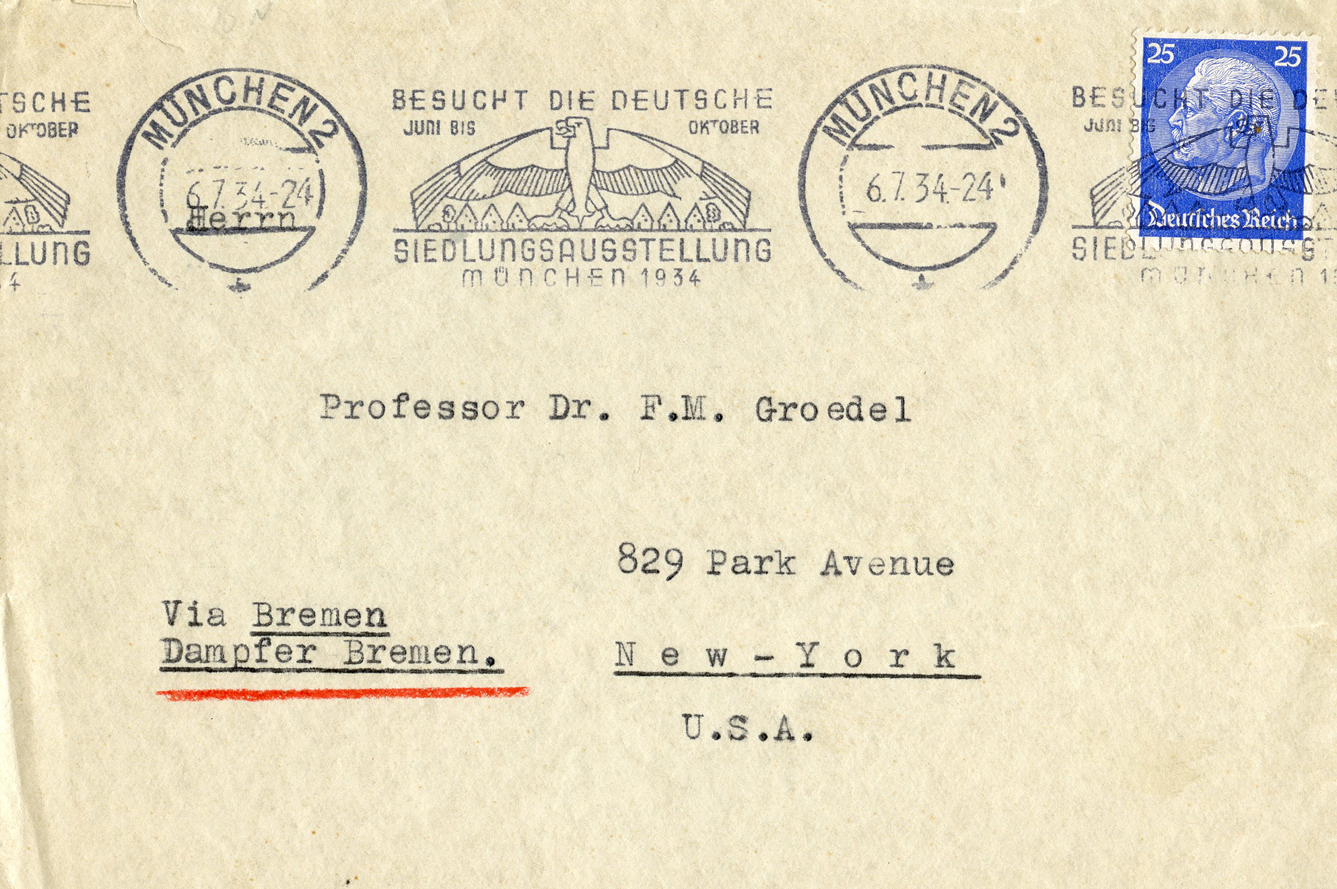 [Below: This was sent from Munich to New York via the S.S. Bremen and postmarked on July 6, 1934. Click to enlarge.]