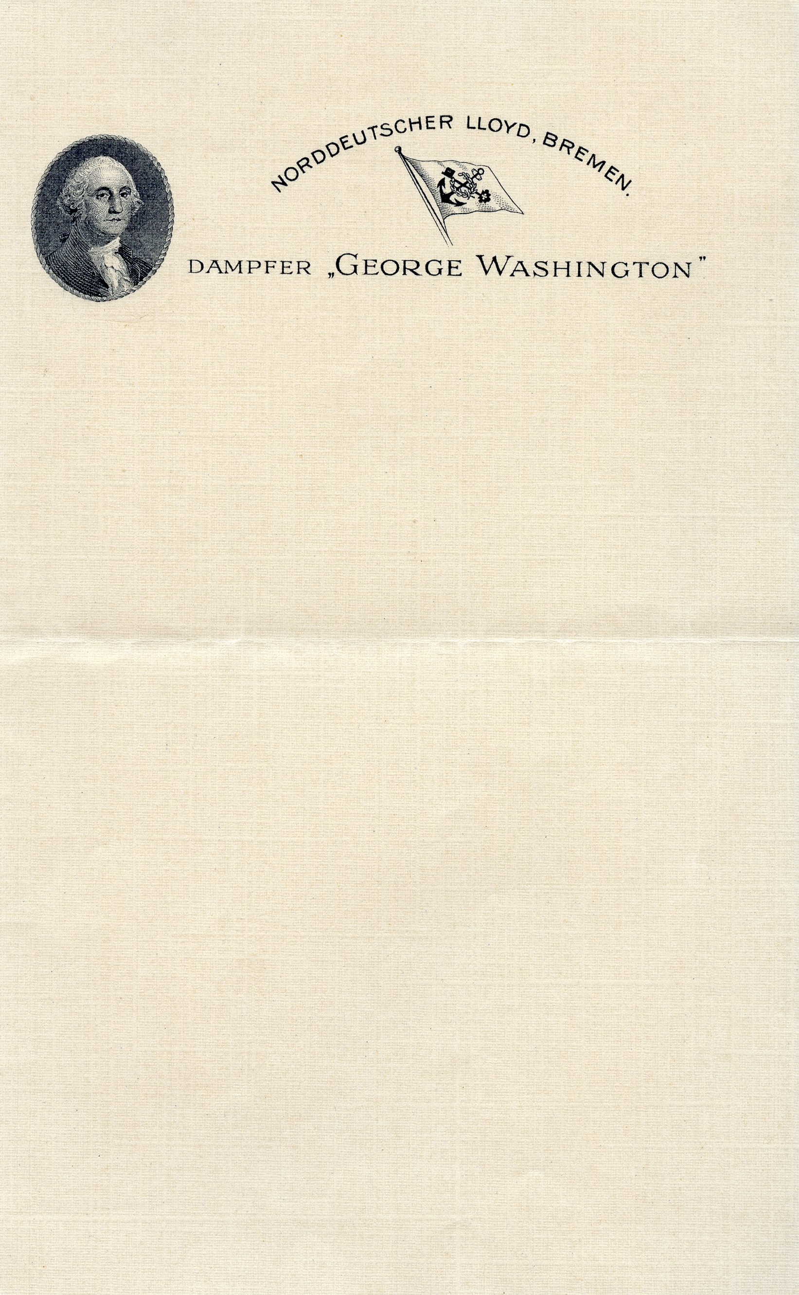 [Below: Stationary from the 'George Washington', from the Norddeutscher Lloyd, Bremen line. Click to enlarge.]