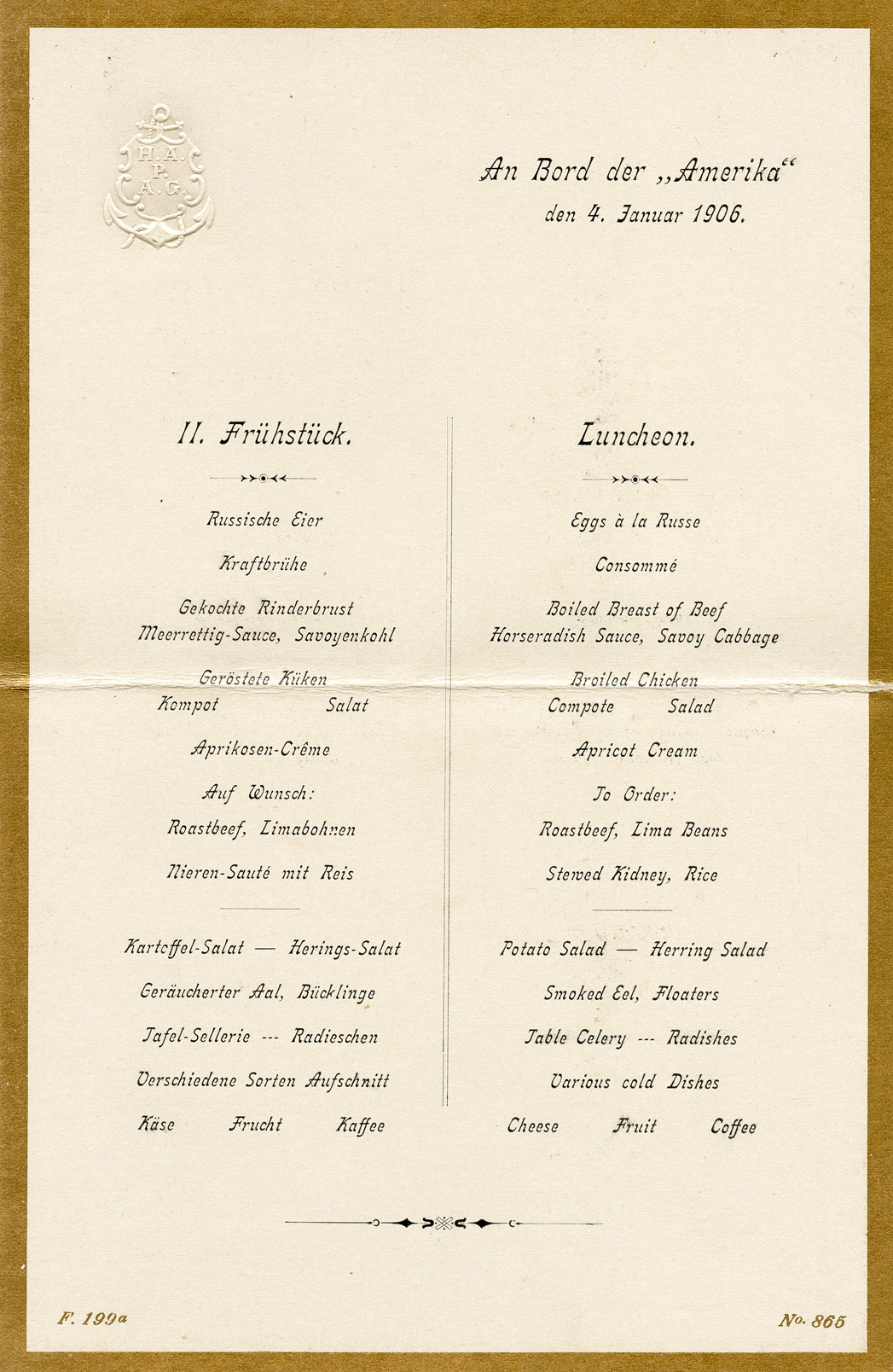 [Below: This is a menu from the 'Amerika' ship from January 3, 1906. Click to see more.]