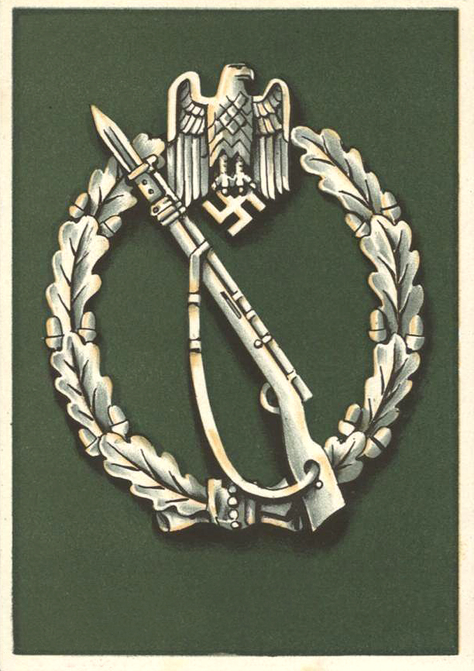 [Below: Here is a postcard showing the Infantry Assault Badge.]