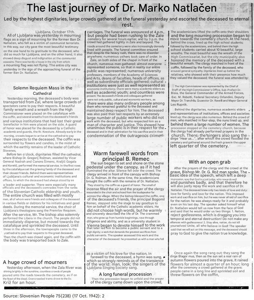 [Below: Newspaper ('Slovenian People') from October 17, 1942 regarding the death of Marko Natlacen.]