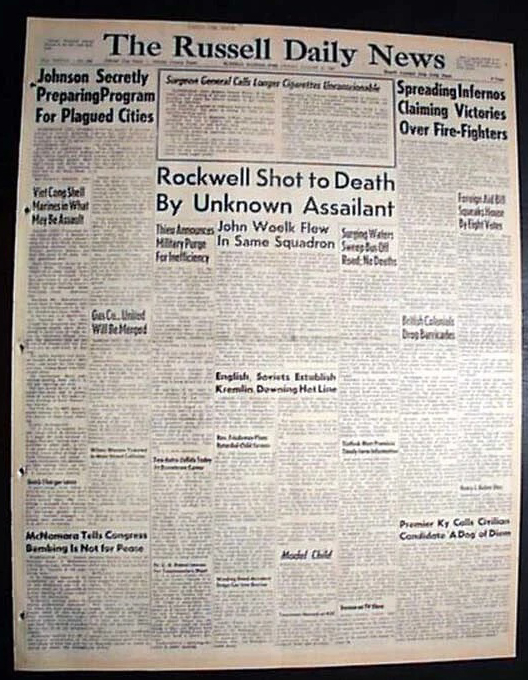 [Below: The New York Daily News: 'Sniper Slays Nazi Rockwell', August 25, 1967.]