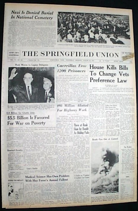 [Below: The Springfield Union reports on Rockwell's remains being denied a soldier's burial.]