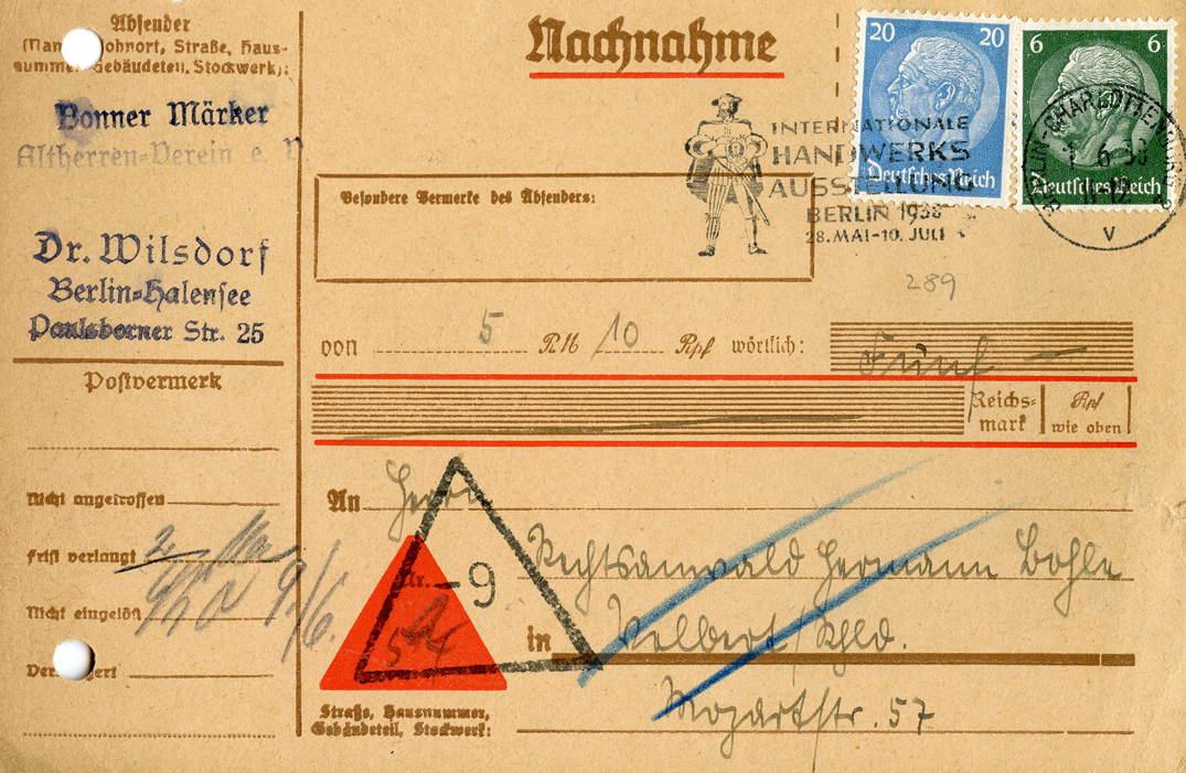 [Below: This is another 'cash on delivery (COD)' receipt from Berlin, June 1, 1938.]