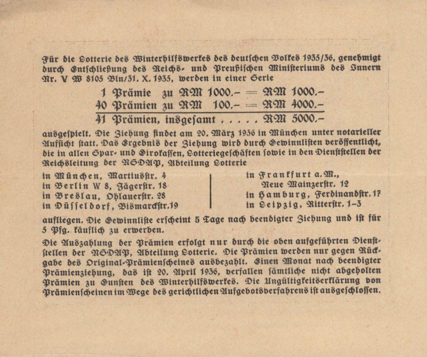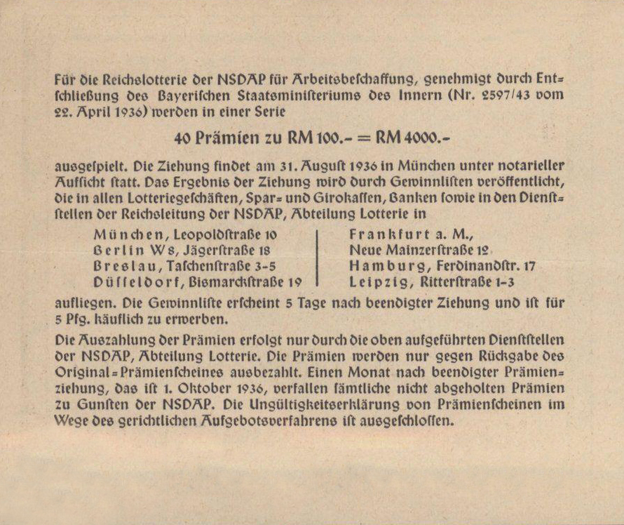 [Below: Large NSDAP lottery paper from late 1940. Reverse. Click to enlarge.]