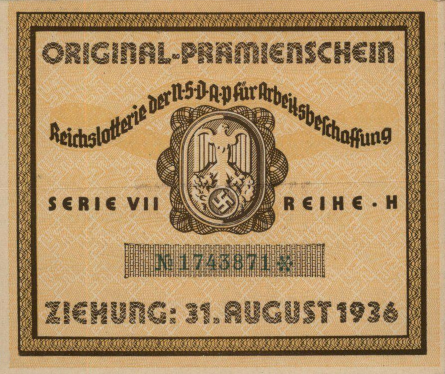 [Below: NSDAP lottery ticket from August 31, 1936.]