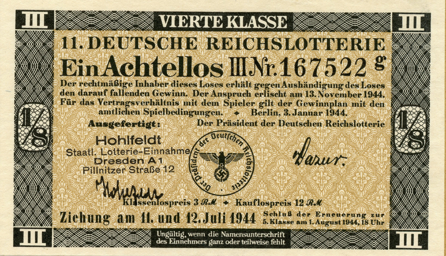 [Below: Third Reich lottery ticket circa 1939.]