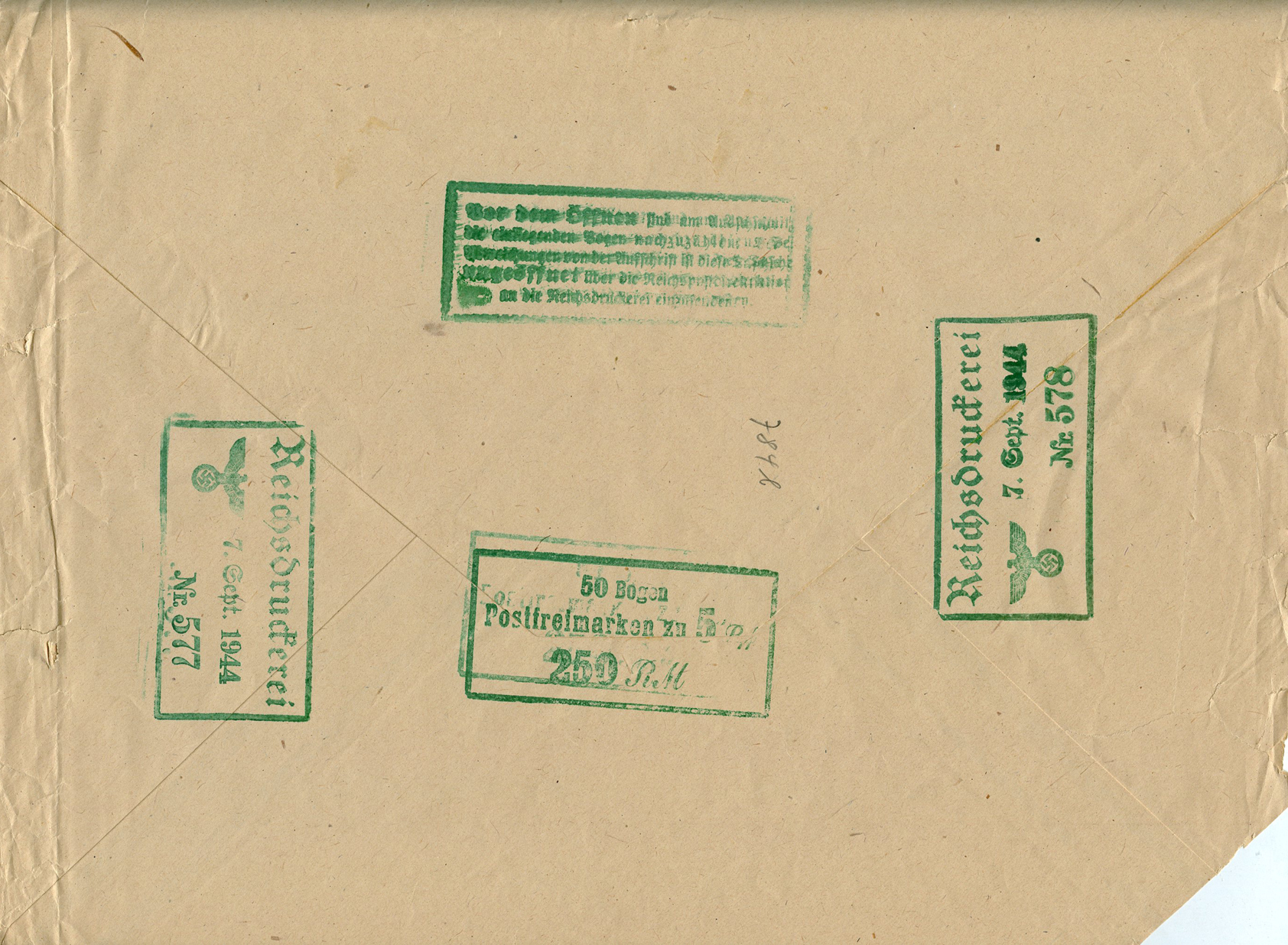 [Below: These are the packaging of Adolf Hitler souvenir sheets. The first of this type of wrapper says: