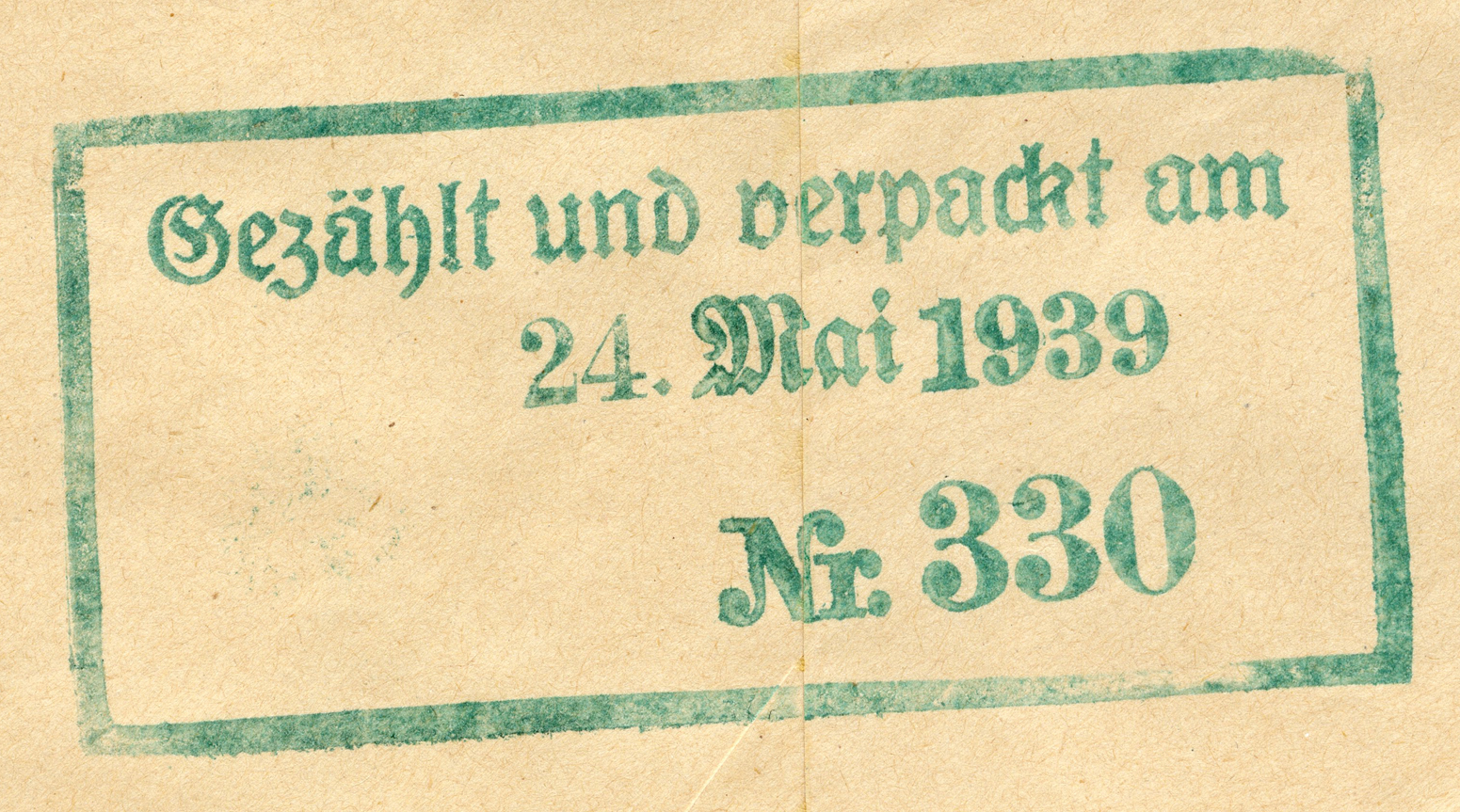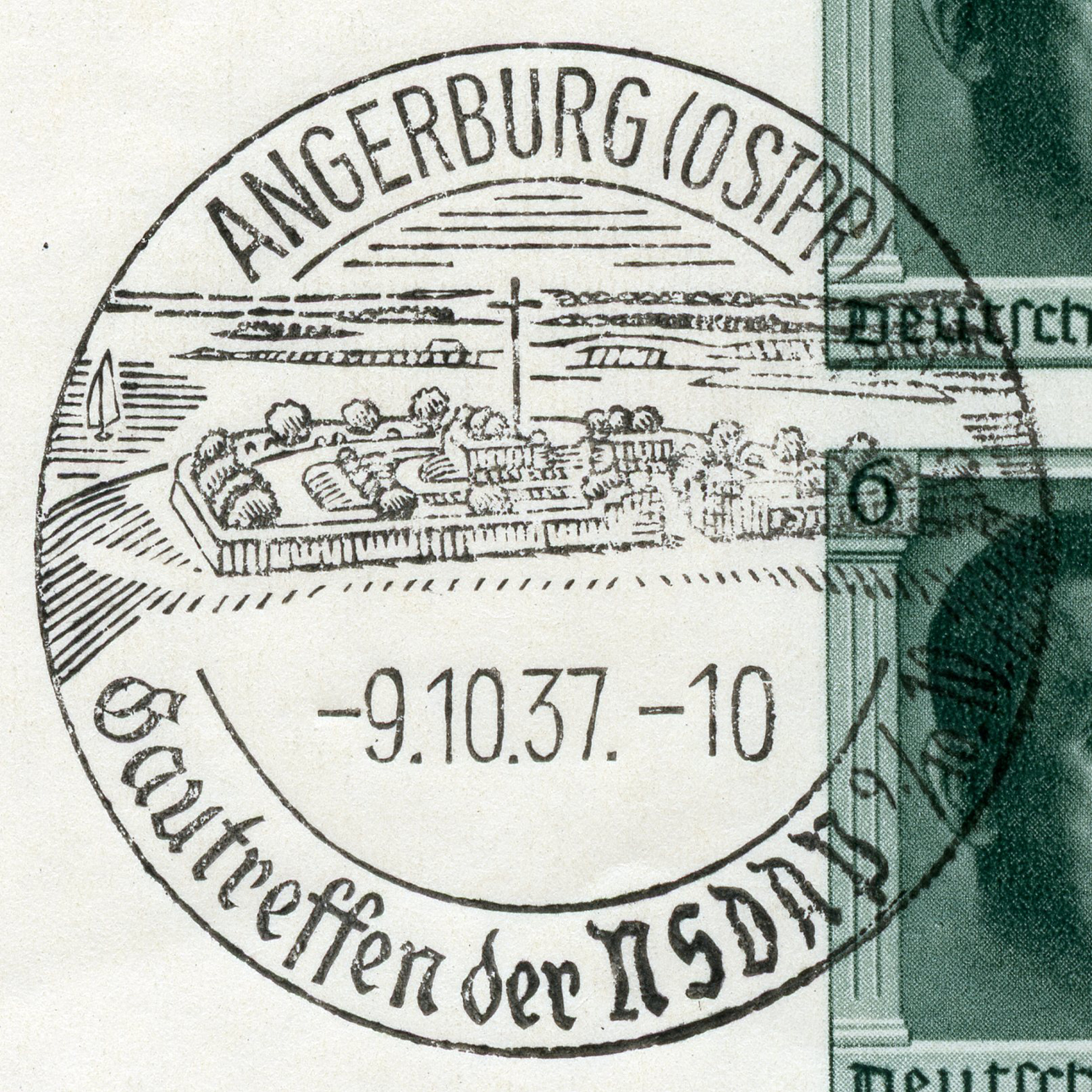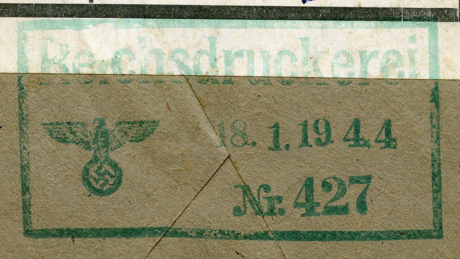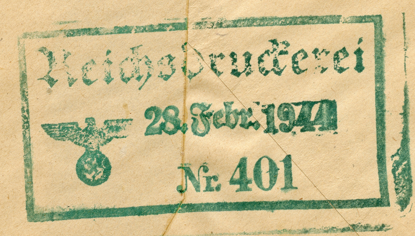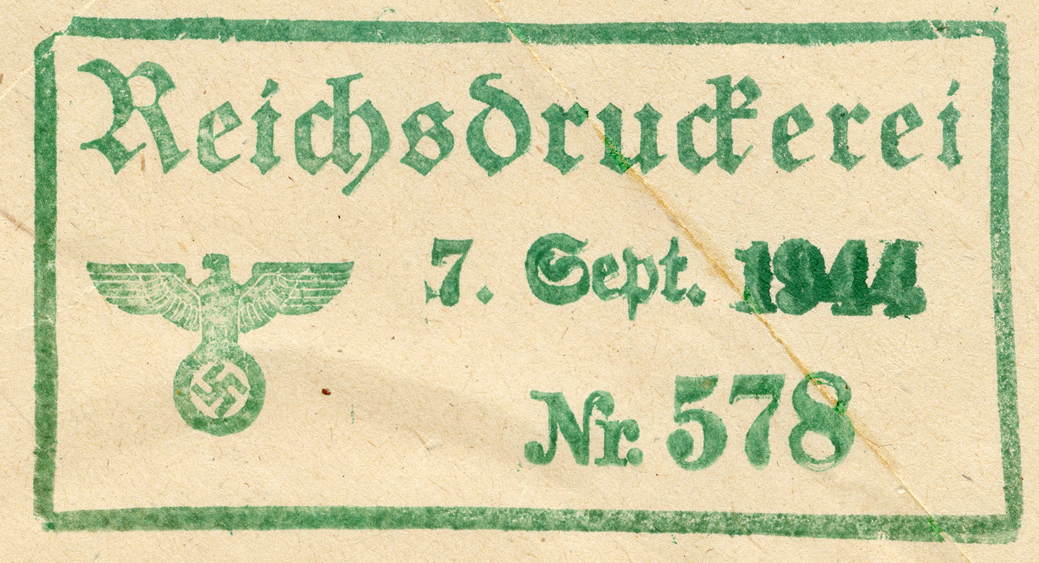 [Below: Postmark close-up. The cursive words are called 'Sütterlin' script and can be very difficult to read. Oddly, there were even typewriters whose keys typed in the Sütterlin script.]