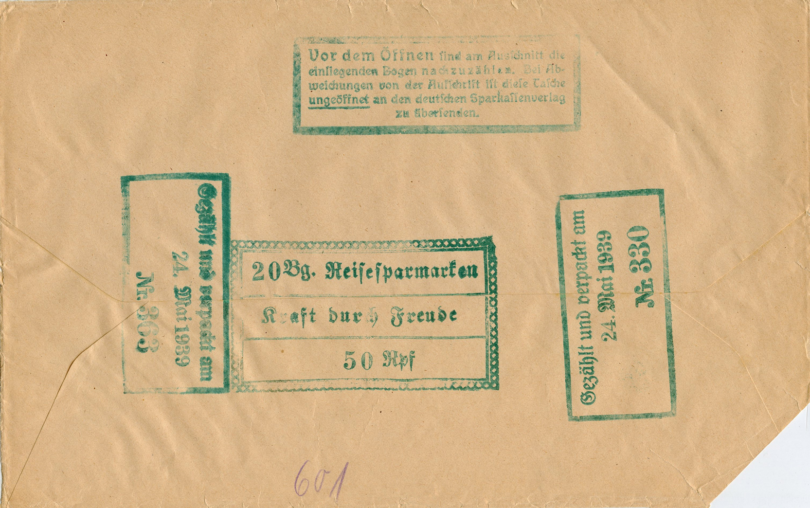 [Below: This envelope was postmarked in Stuttgart on April 20, 1937 and sent within the city. The words 'Stadt der Auslandsdeutsche' mean 'City of Germans abroad', it was given this name in 1936.]