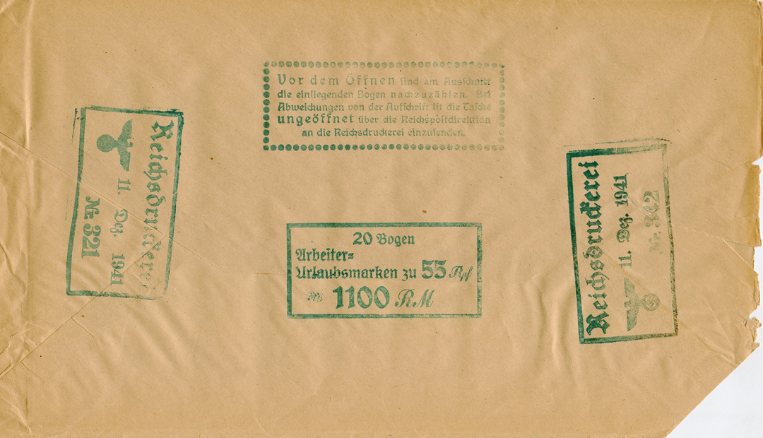 The second of this type of wrapper has the same text, but a different red overprint, which says: 'Ungezähnt', which means 'Imperforate'.