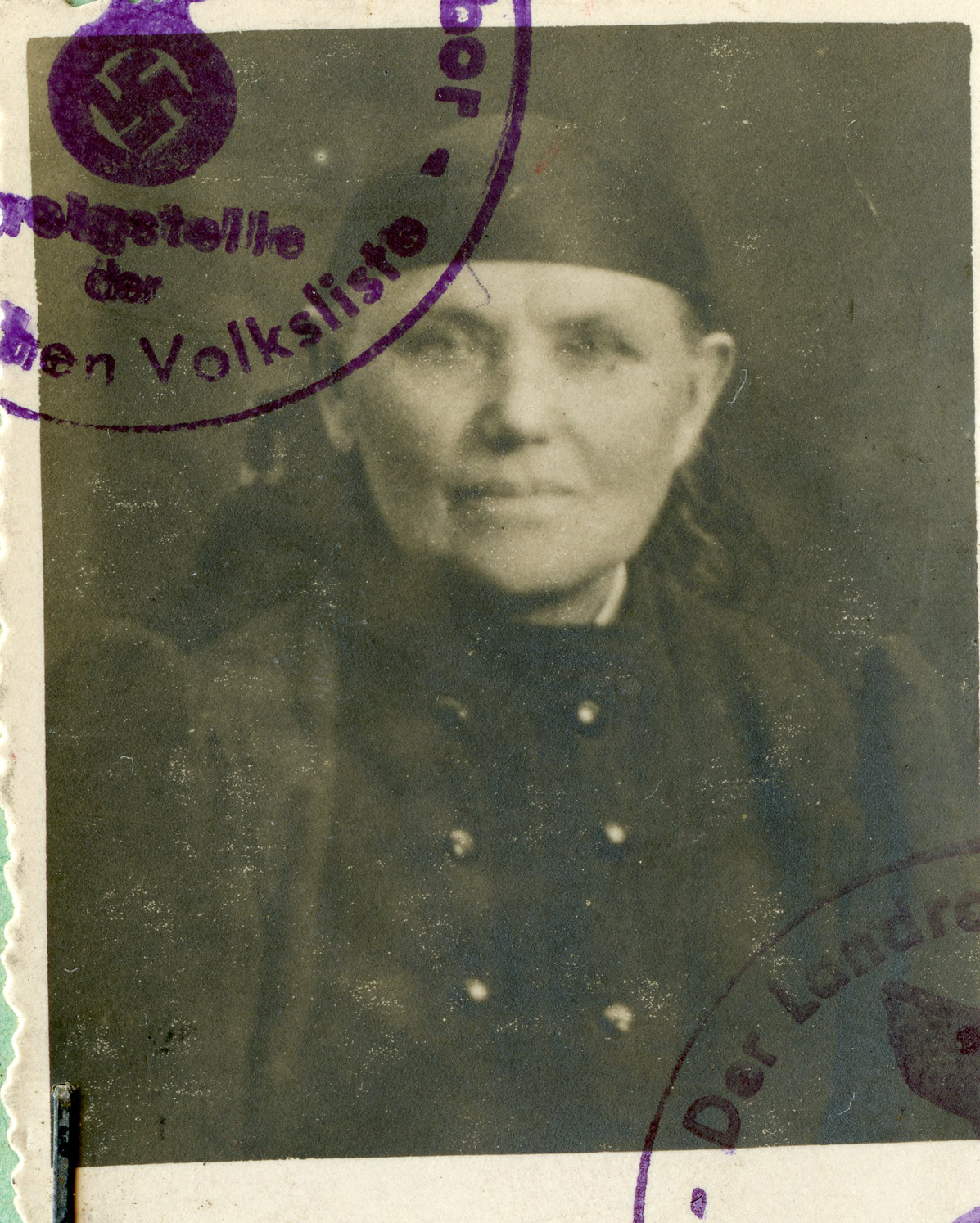 It also lists her birthplace and date, address, proffession and current address. She was 83 years old at the time of this I.D. card.]