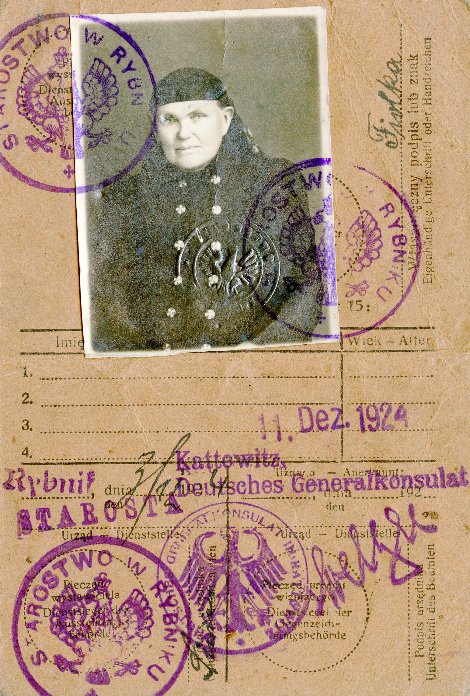 [Below: Here is the second card. This is a two-sided card in Polish and German, from 1924. This is some sort of card dealing with the German and Polish consulate offices?]