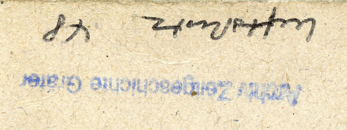 [Below: This small stamp says: 'Archiv Zeitgeschichte Gräter' which means it was part of a history archive, after the war.]