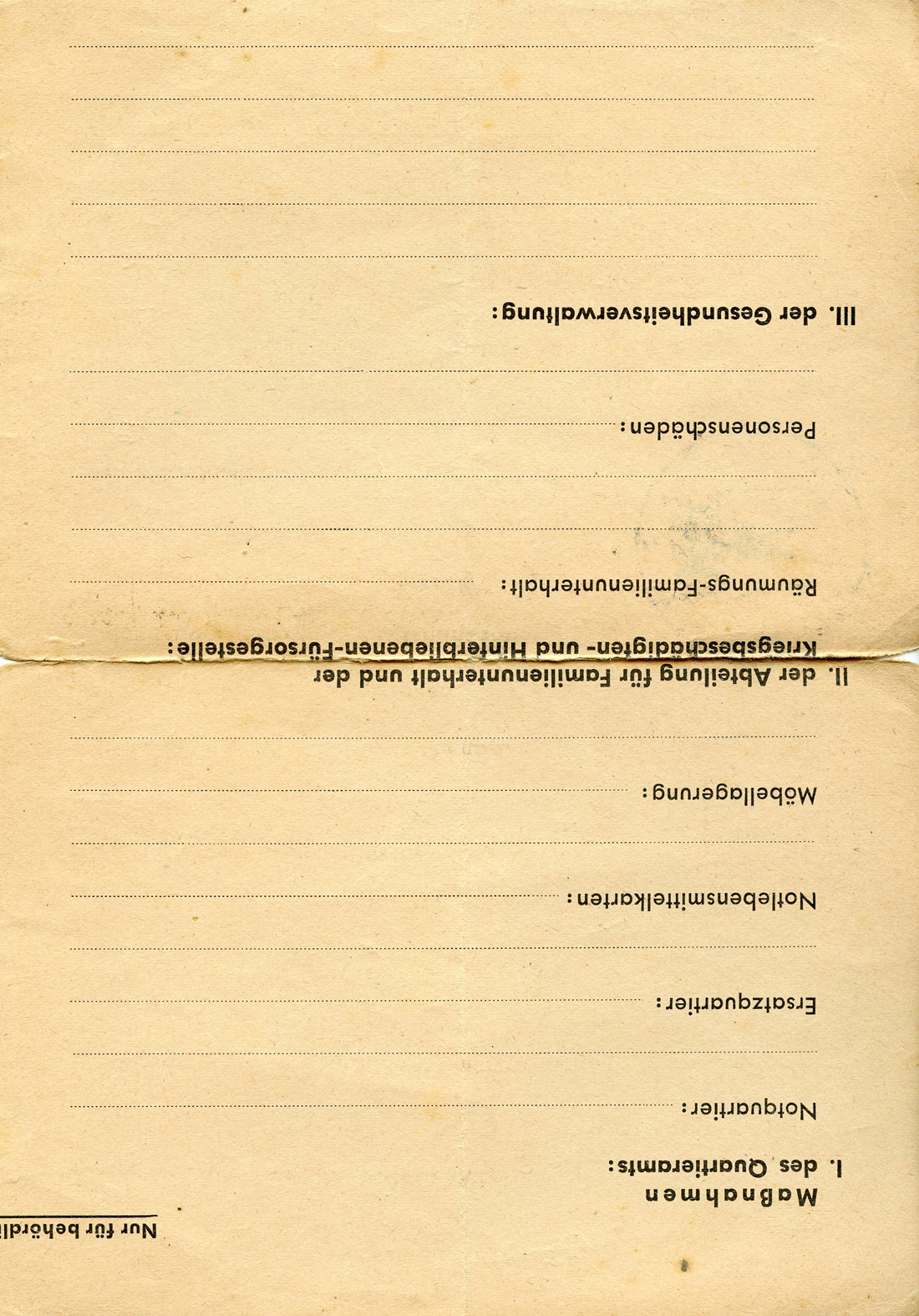 [Below: This is interesting. It is a card for victims of Allied terror bombing on civilians. It enabled the holder to apply for aid from the government. At the top it says: