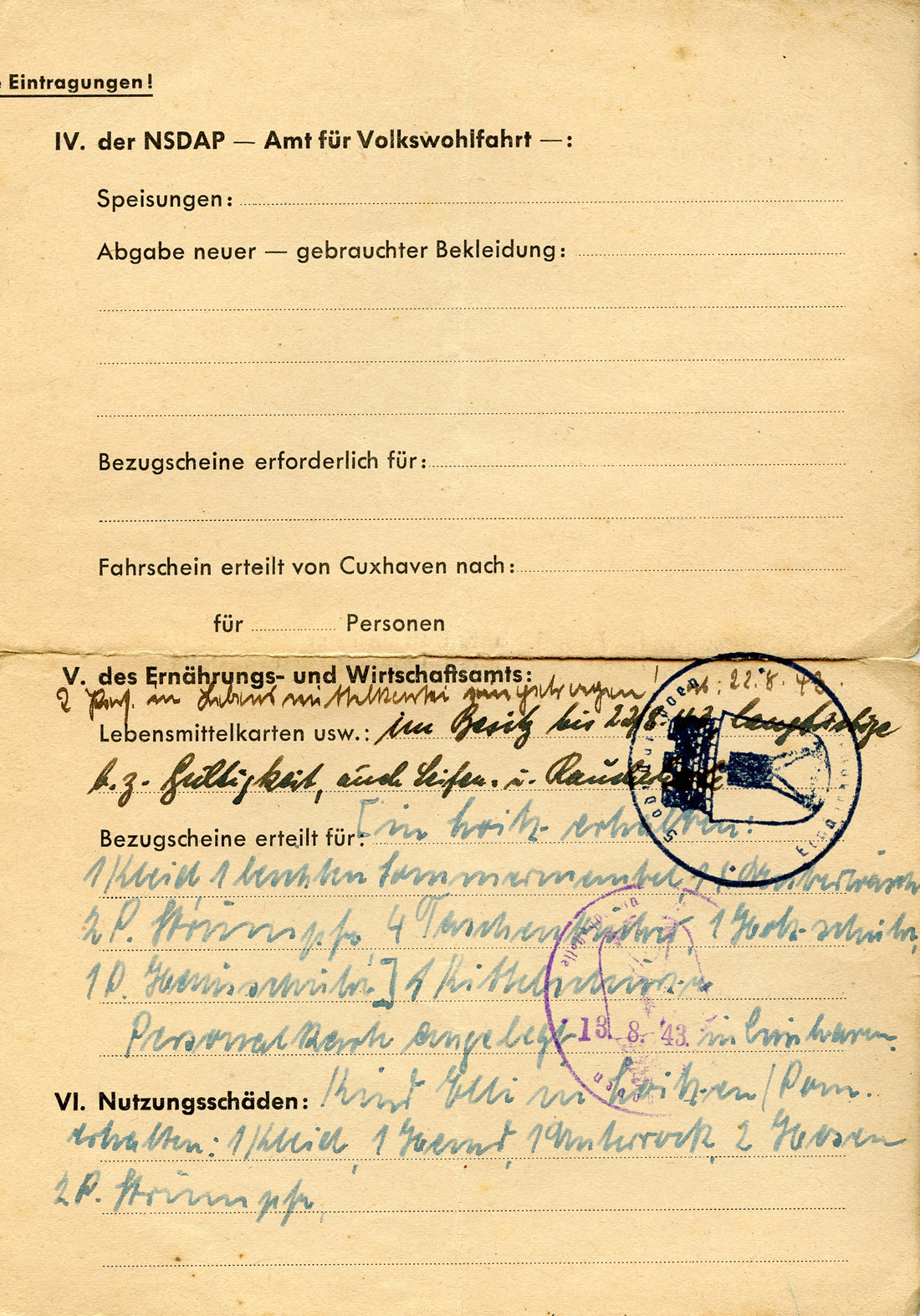[Below: This mentions 'the NSDAP Office for People's Welfare', 'Meals', 'Distribution of used clothing', 'Rations and food stamps' and even cigarette rations.]