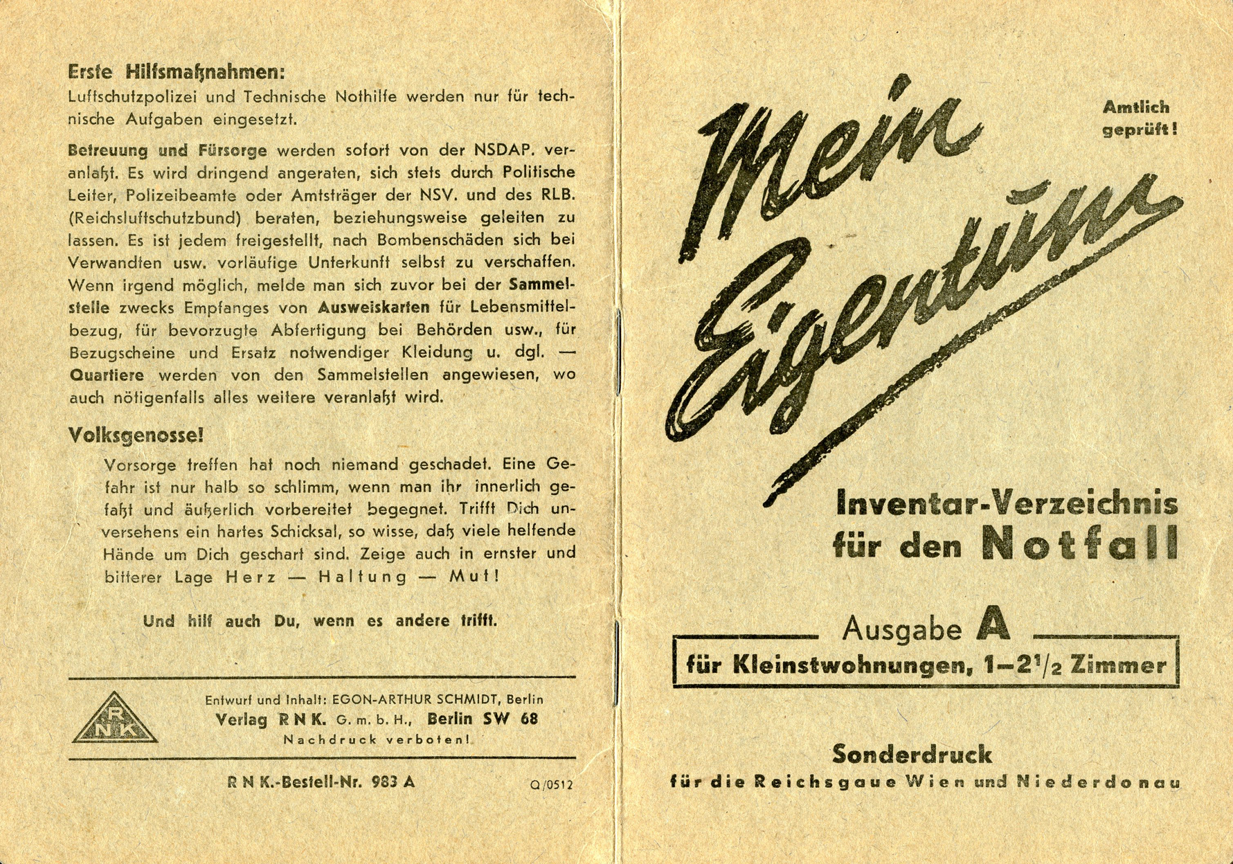 [Above: NSV identity booklet from 1940/1941.]