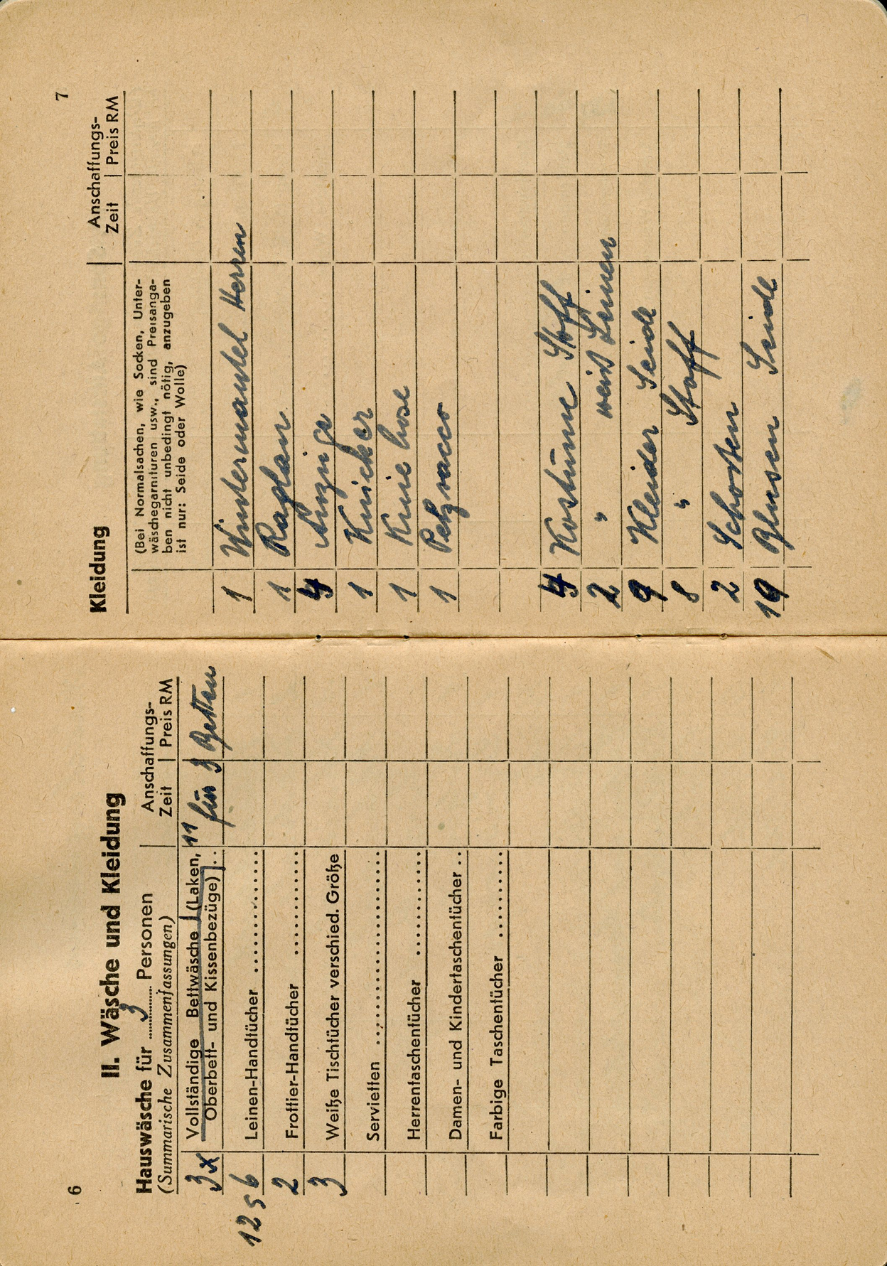 [Below: Page within. Here you can list your linen and clothing.]