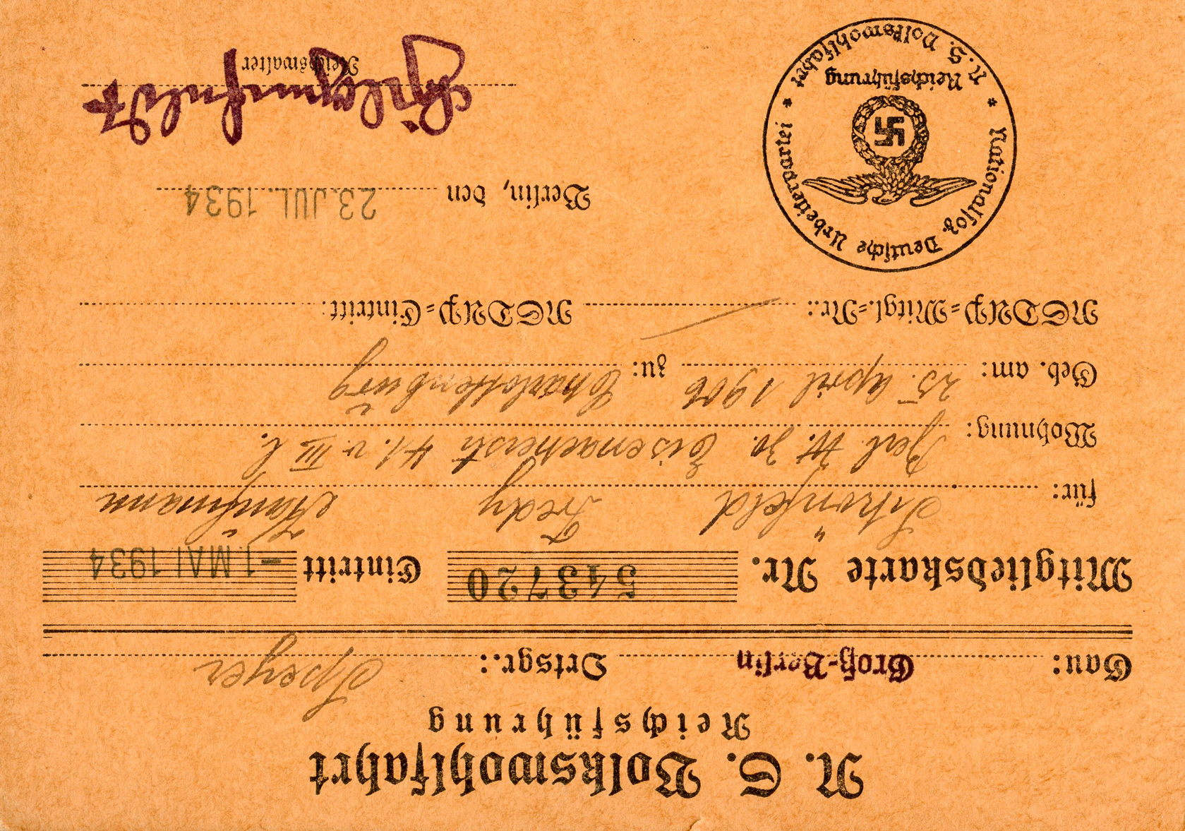 [Above: NSV identity booklet - page one.]