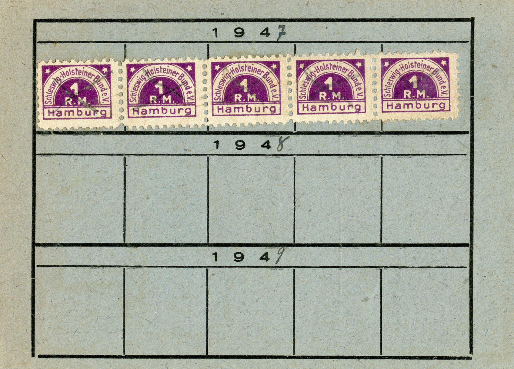 [Above: Inside showing dues stamps for 1947. It would appear there was no 1946.]