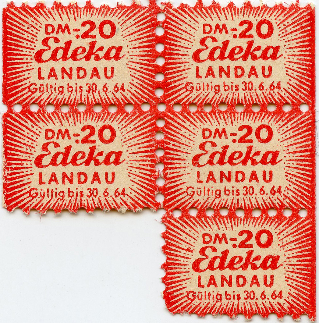 [Above: These stamps were stuck in the membership cards above, but they don't have anything to do with them. Edeka is a German supermarket company.]