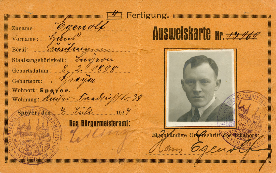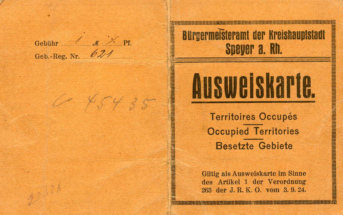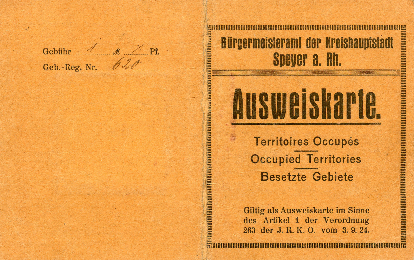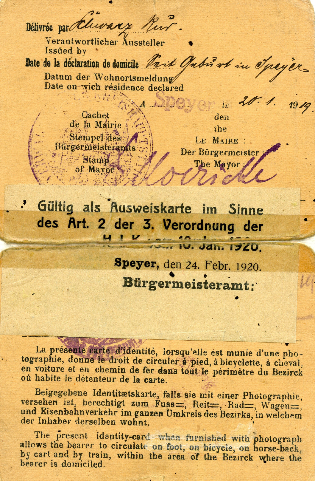 [Above: This is an interesting post-WWI (1927) I.D. card from the Allied occupation of the Rheinland. It says: