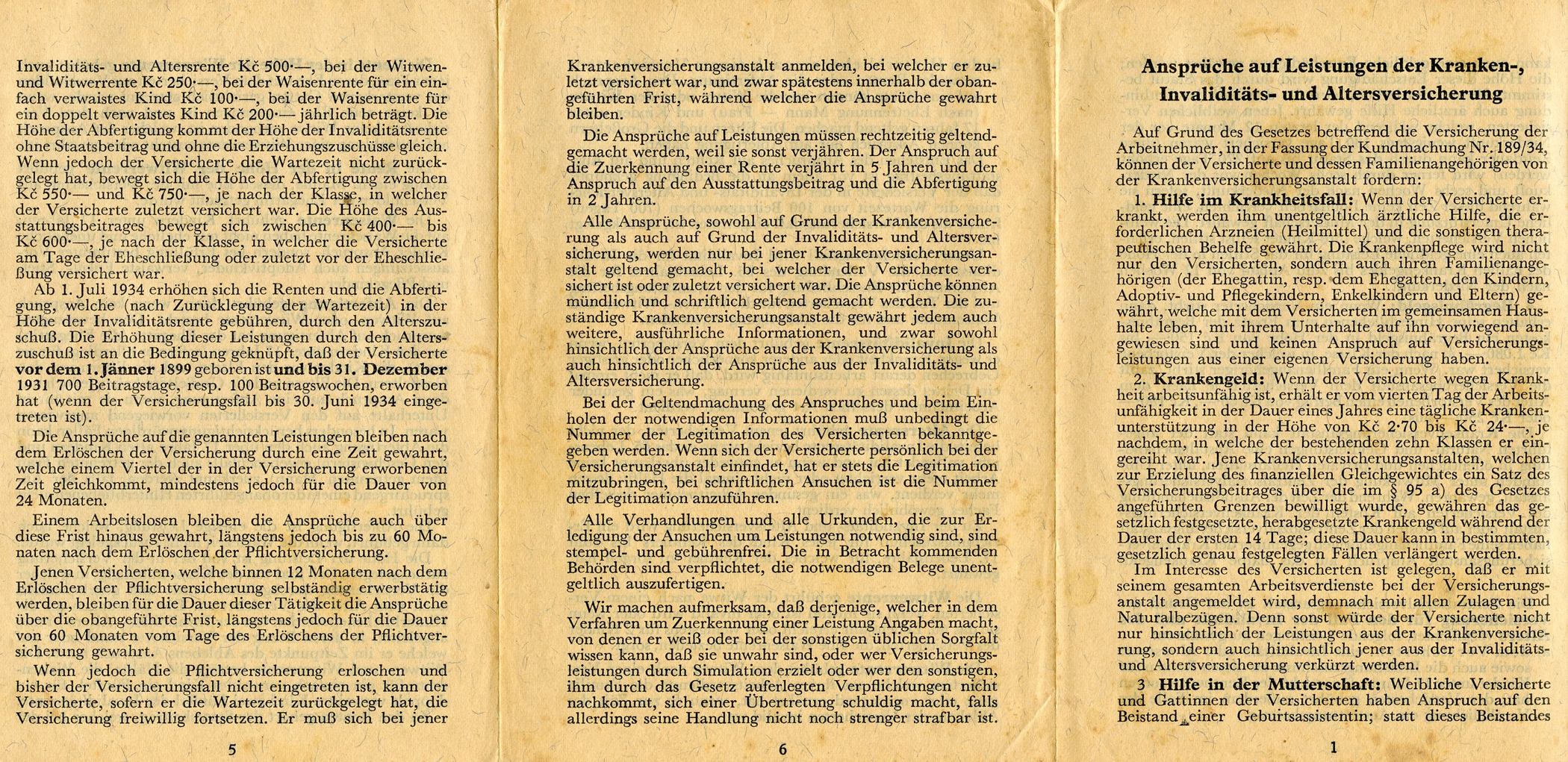 [Above: This booklet is for 'Claims to Benefits from Sickness, Disability, and Old Age Insurance'.]