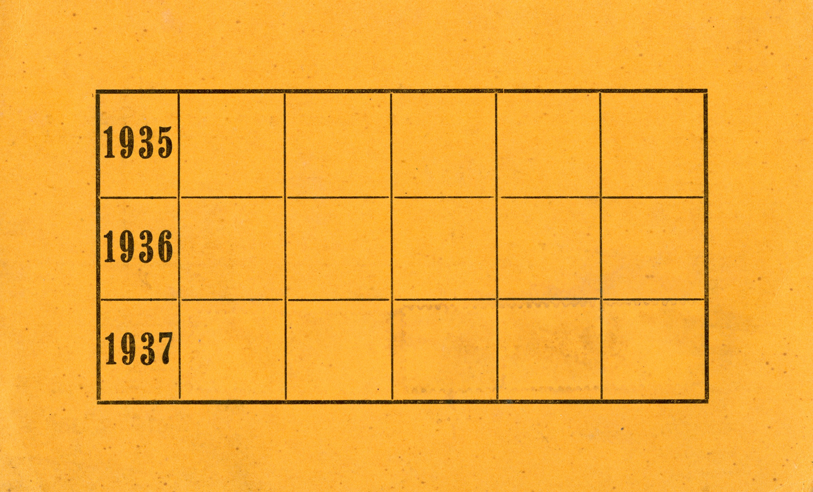 [Above: Reverse. This is a place for dues stamps from the years 1935-1937.]