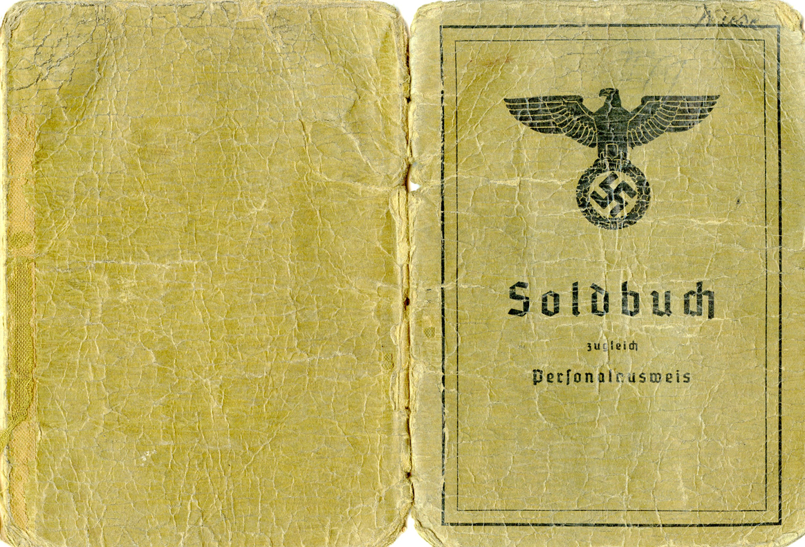 [Above: Wehrmacht Soldbuch, this was issued just a few days before the invasion of Poland, on August 27, 1939, to a Pioneer Gefreiter (born December 31, 1913). He was promoted to Obergefreiter on June 1, 1941 (less than a month after the invasion of the Soviet Union on June 22, 1941). In May and June 1941 he was wounded and sent to field hospitals, being discharged about a month later. He was awarded the Iron Cross 2nd Class on June 26, 1940 (About one month from the invasion of France on May 10, 1940). Click to see inside.]