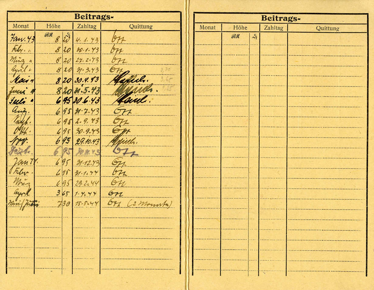 [Below: Here is another employee insurance card, but from 1943.]