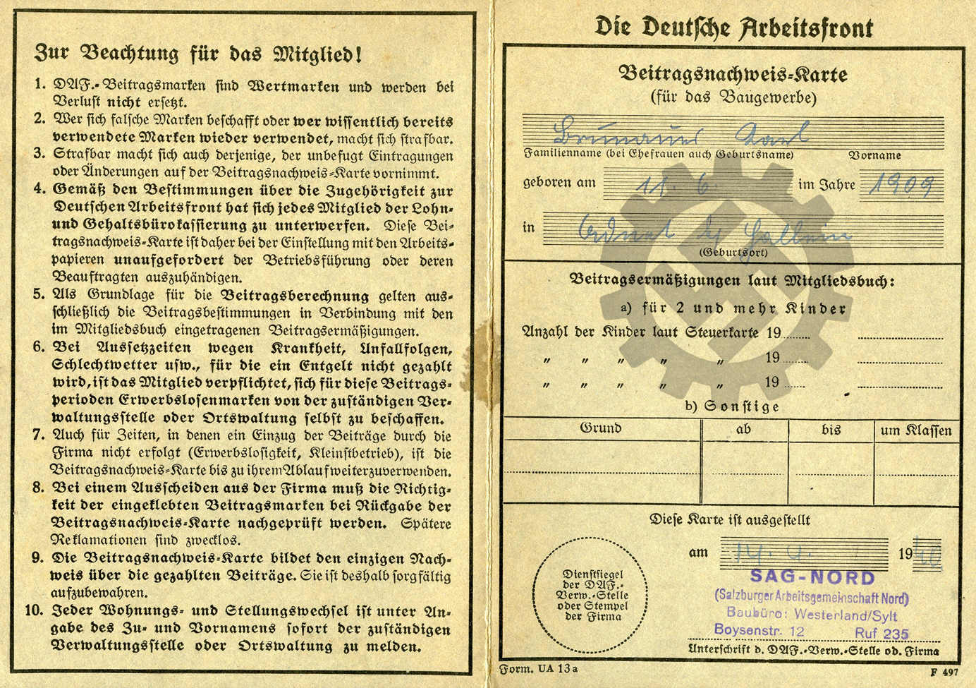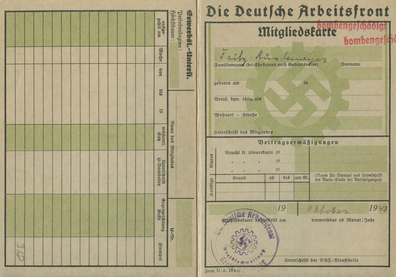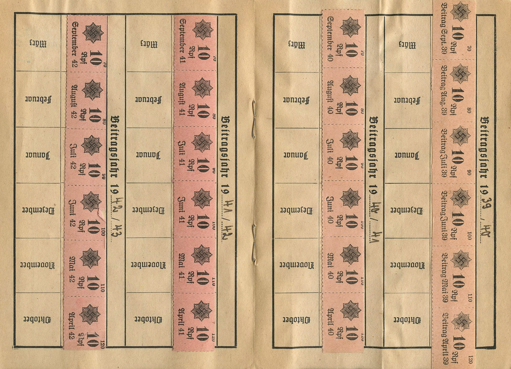 [Below: A 1939 DAF/Strength Through Joy membership card.]