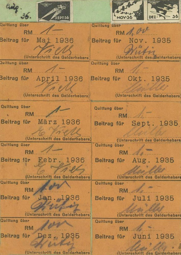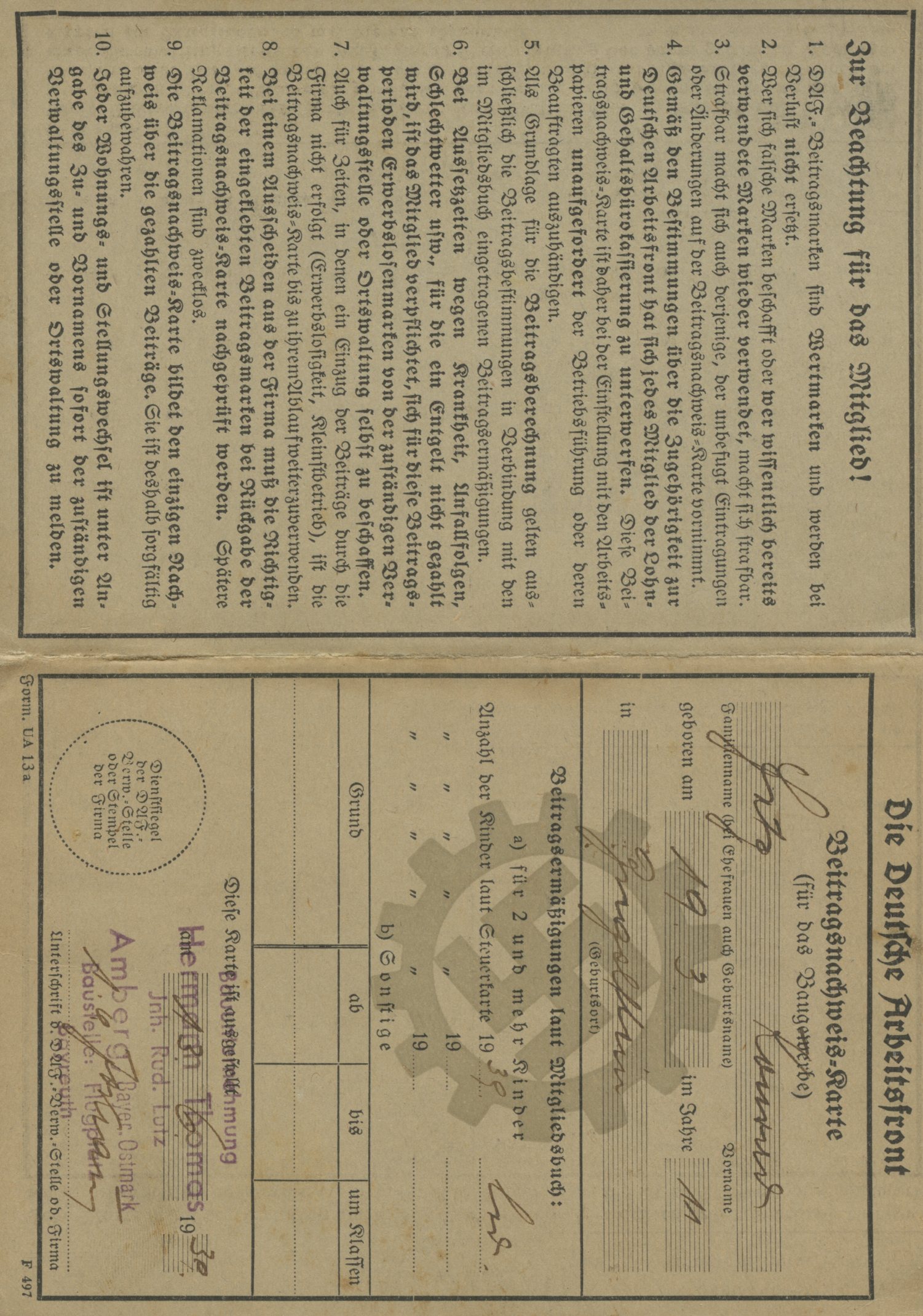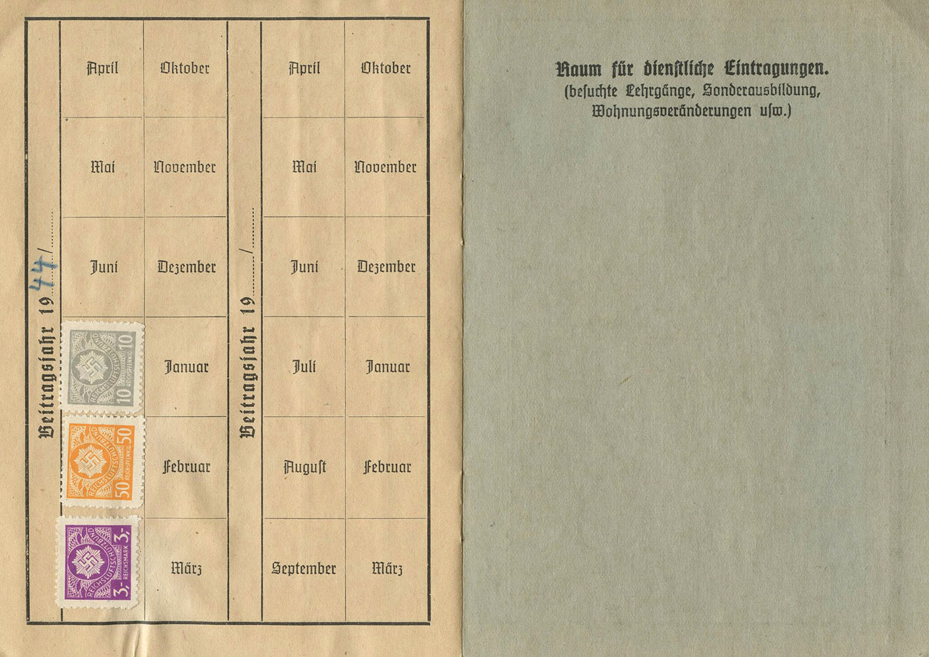 [Below: A 1939 DAF/Strength Through Joy membership card.]