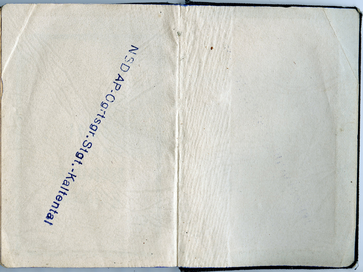 [Below: Pages within. NSDAP ink stamp. Kaltental is municipality of Ostallgäu in Bavaria, Germany. Click to enlarge.]