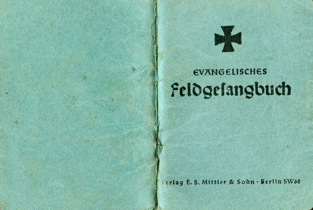 [Below: This is an Evangelisches Feldgefangbuch (Protestant Prisoner of War Book). You'll also see various pictures (and a paper) that were stuck within it. Click to enlarge.]