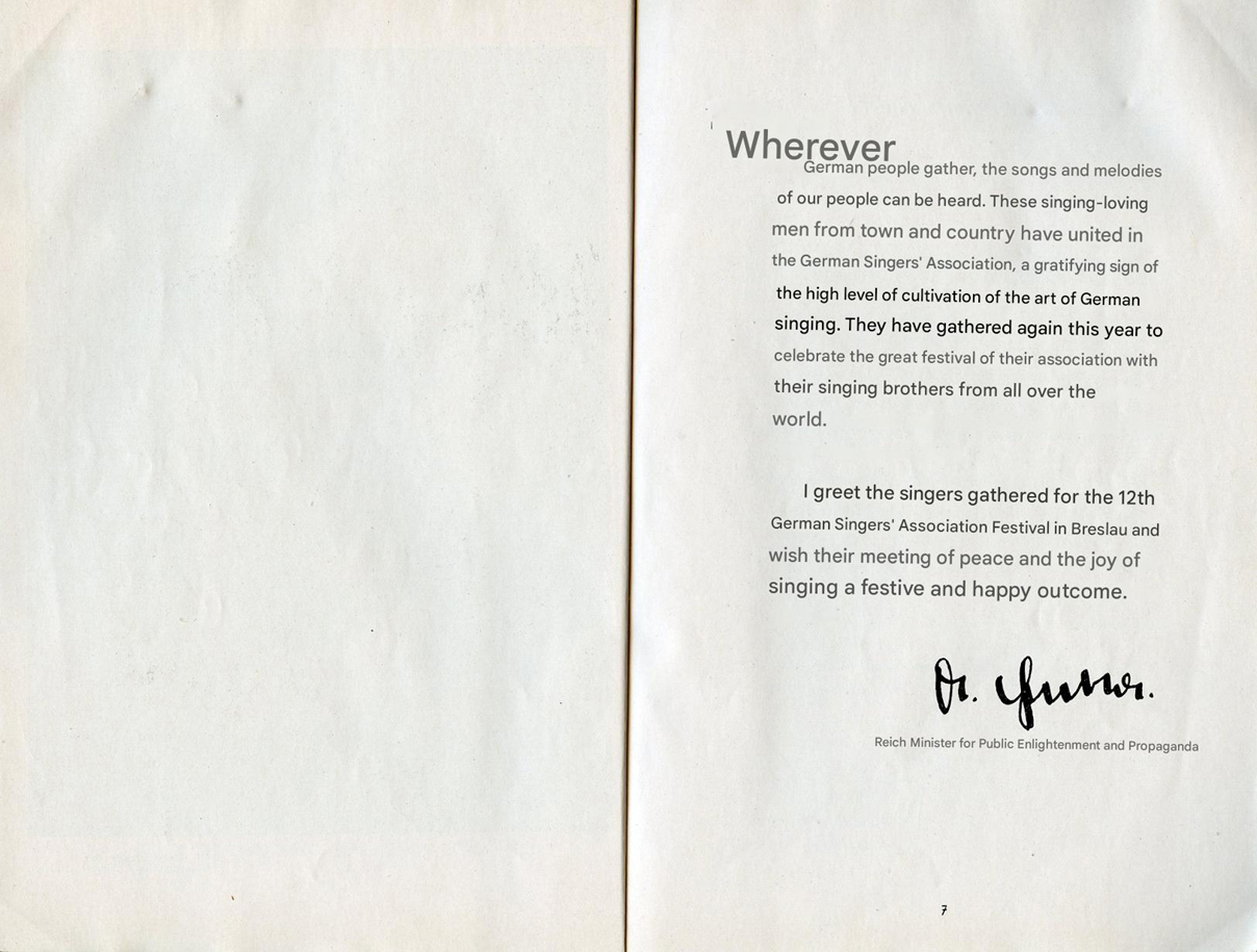 [Below: 128 page booklet from the German Singer's Association, circa 1937. Click to see inside.]