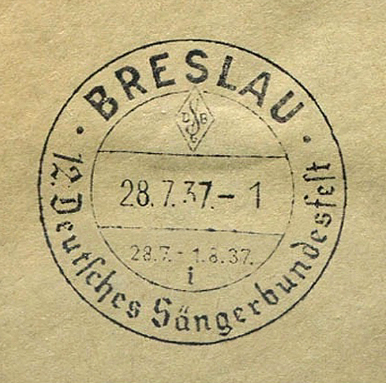 [Below: German Singer's Association 75th anniversary postal cancel.]