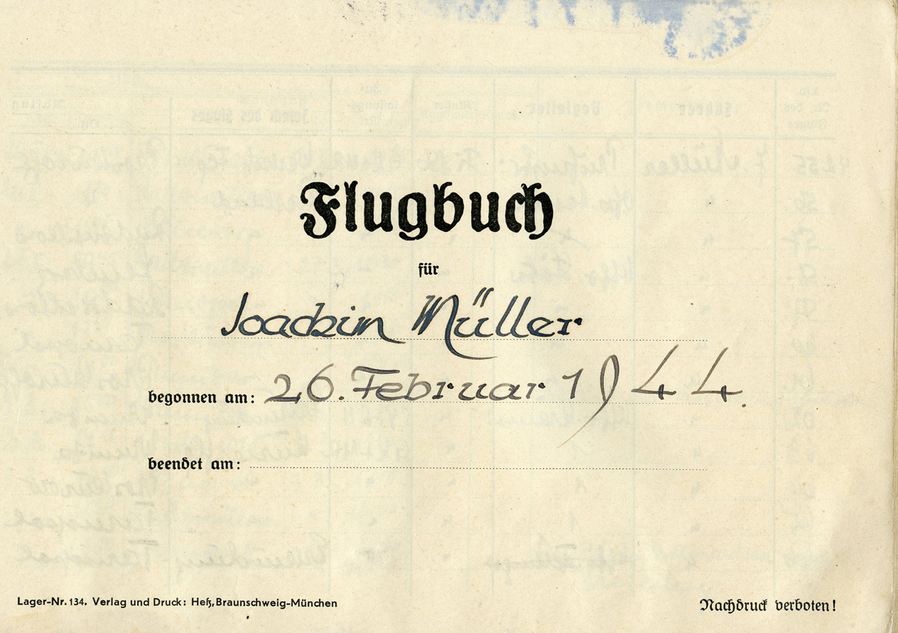 [Below: This is a fascinating piece of rarely seen history. This is a very late-war 'flugbuch' (flight book). This belonged to an Oberfeldwebel named Joachim Müller. It begins on the dark day of February 26, 1944. Unfortunately I can't really find any information on this guy (his name is very common and there seems to be at least two others with his name who served in the Luftwaffe). He seems to have been an Observer. There is a lot of interesting information here, but I just don't have the time to figure it all out at the moment unfortunately. One of the final entries is a flight over Königsberg in East Prussia, just days before a massive Soviet offensive. The Battle for Königsberg would prove to be an especially violent affair, where the Germans fought valiantly against the forces of darkness. If you are interested in this battle, check out the book 'The Battle of Königsberg - The Struggle for the East Prussian Capital, October 1944 to April 1945', by Brian Taylor, (c)2012.]