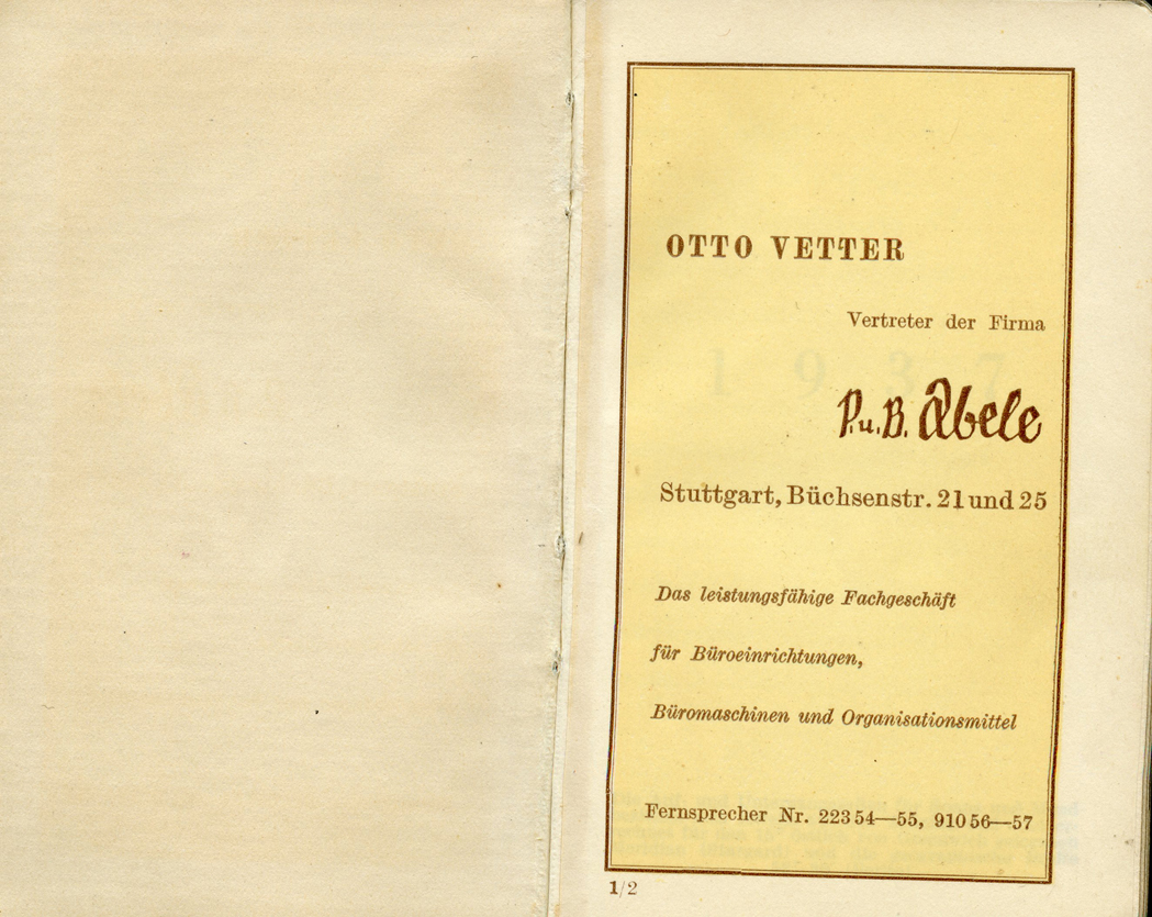 [Below: Front and reverse. This pocket book is from 1937 published by 'P. und B. Abele'. This is extremely high quality, with a soft leather cover, gilt numbers, color pages, non-acid paper and stitched pages. Click the image to see a lot more.]