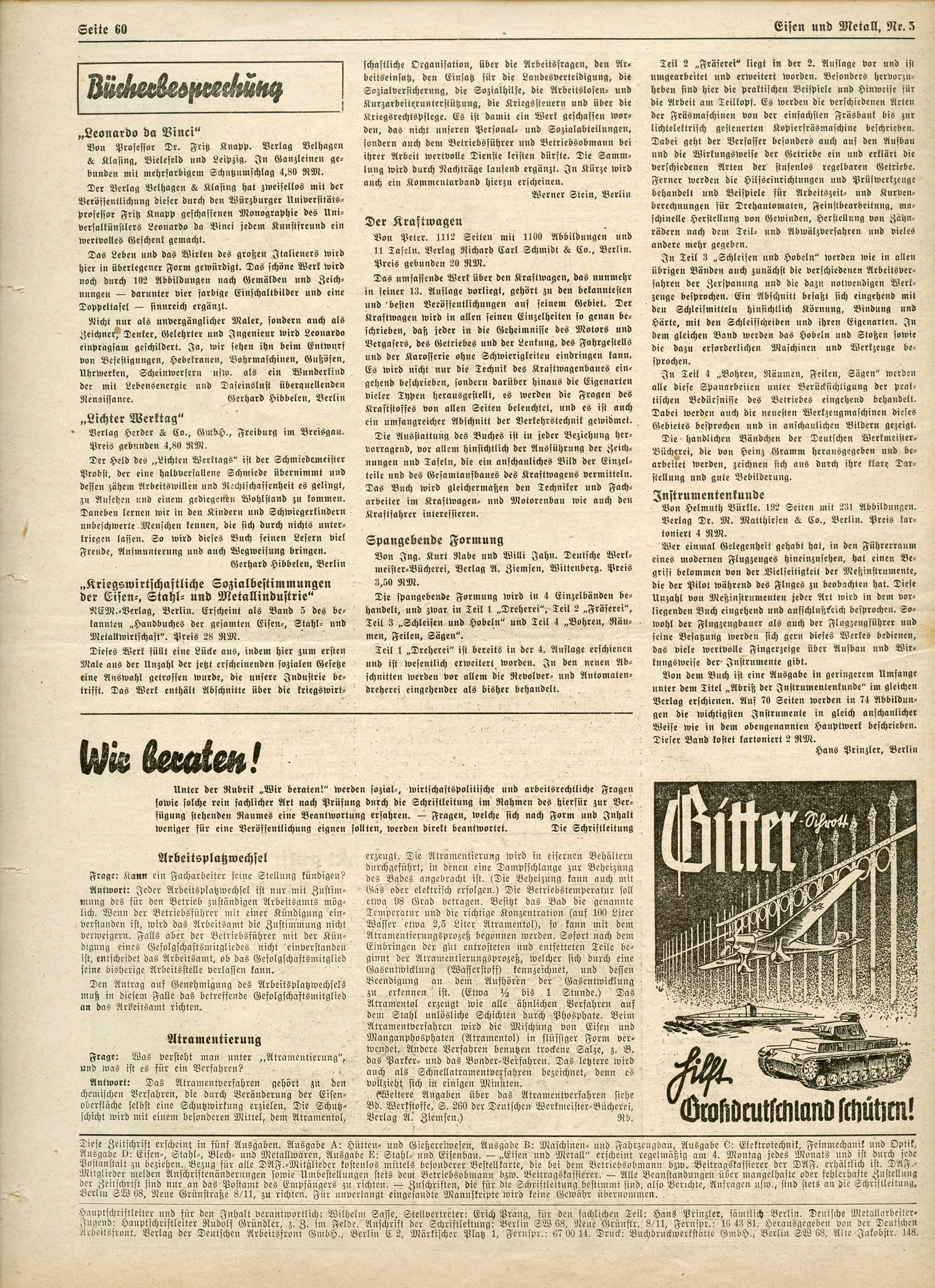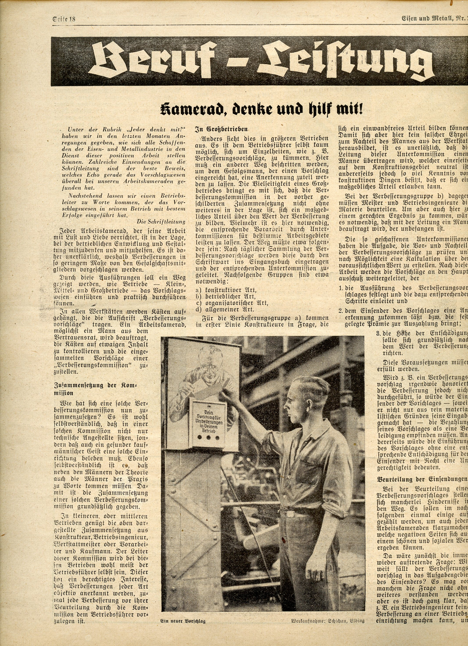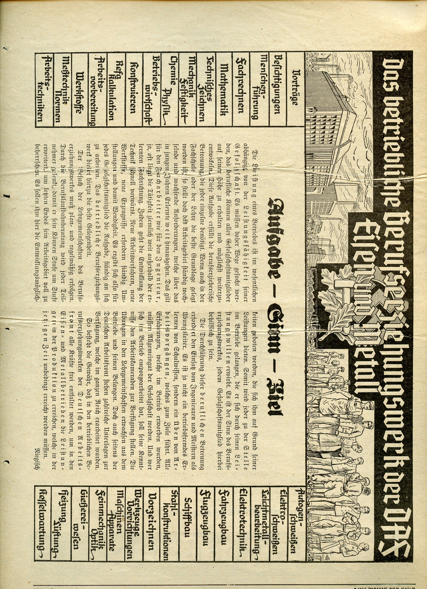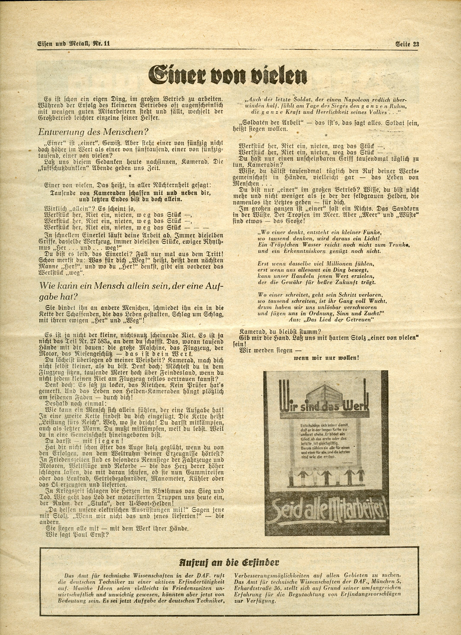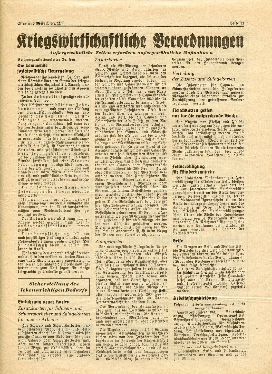 [Below: Below are a selection of rare DAF newspapers, entitled 'Eisen und Metall - Fachliches Schulungsblatt der Deutschen Arbeitsfront' (Iron and Metal - Professional Training Sheet of the German Labor Front), November 1939.]