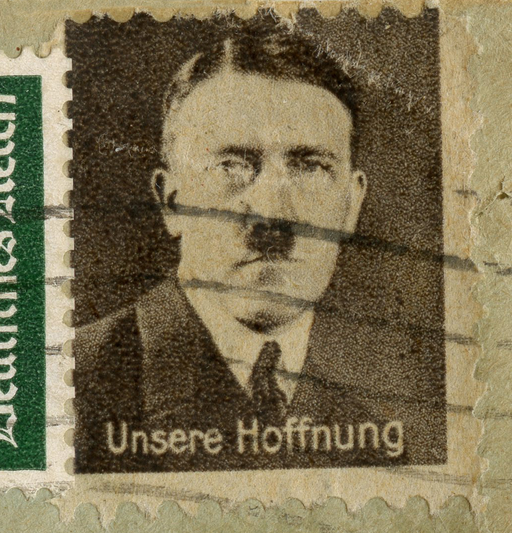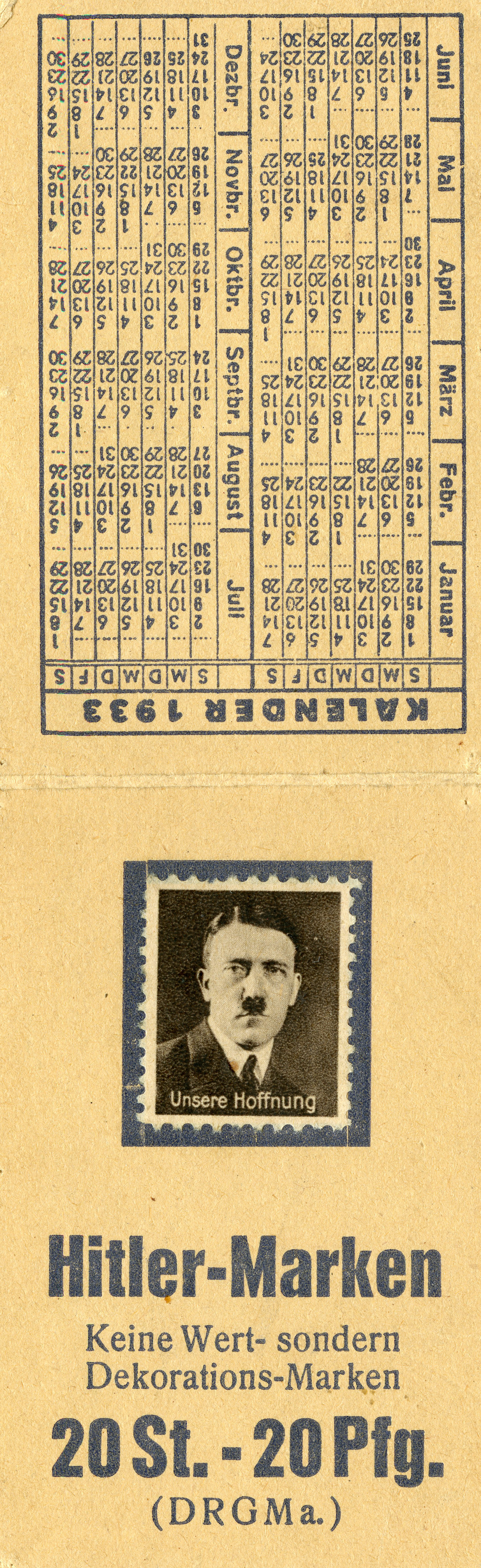 [Below: Here are two early NSDAP donation stamps depicting Adolf Hitler.]