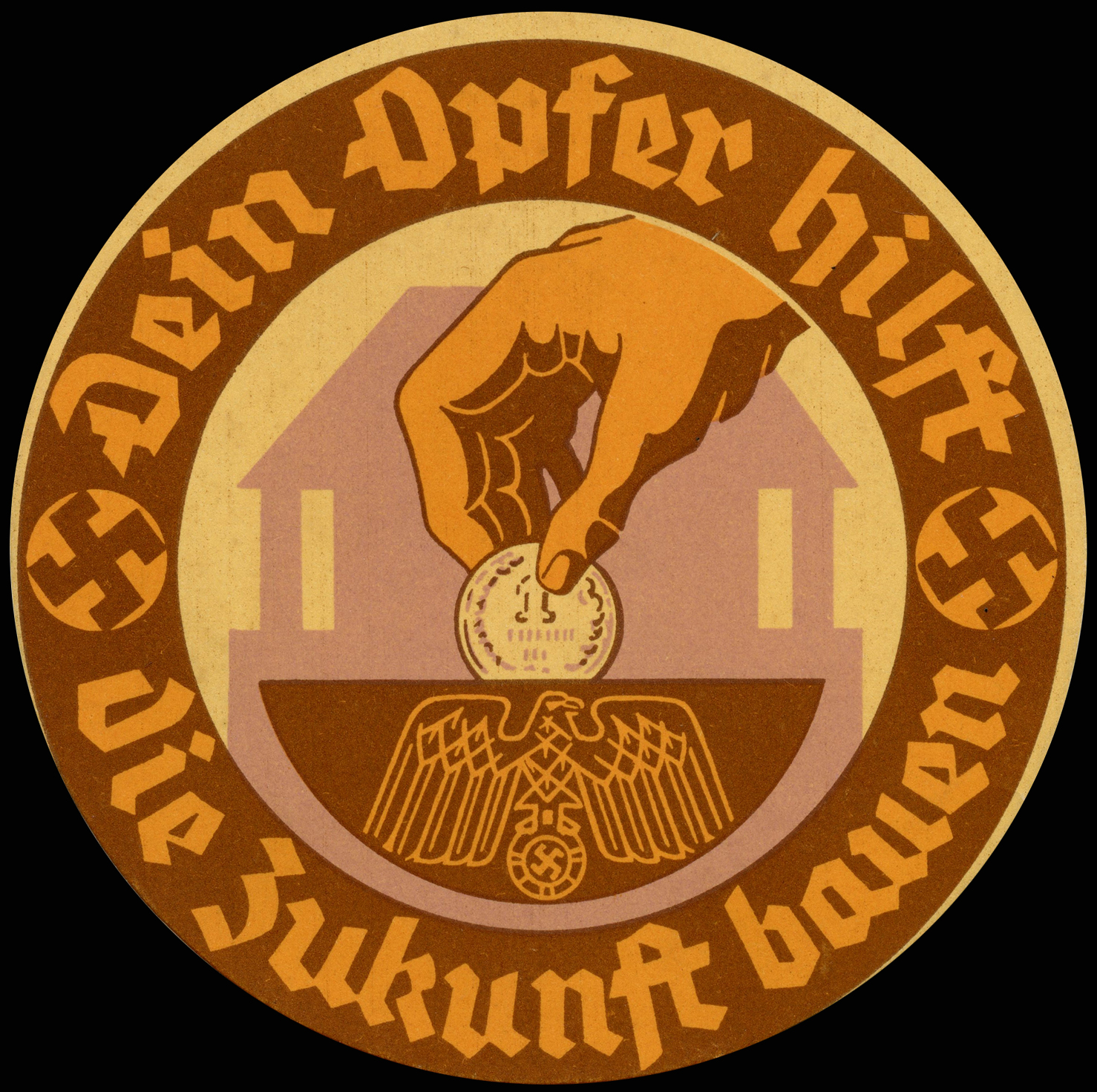 [Below: WHW poster. It says: 'Ein Volk Hilft Sich Selbst' (A People Helps Itself).]