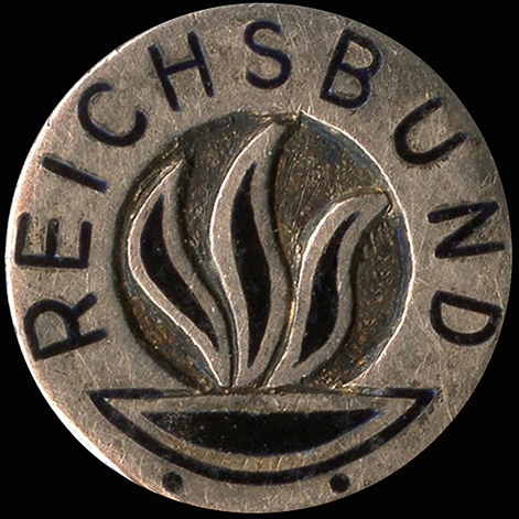 [Below: This is a small, well-made pin, that says: 'Reichsbund' (Reichs Organization).]